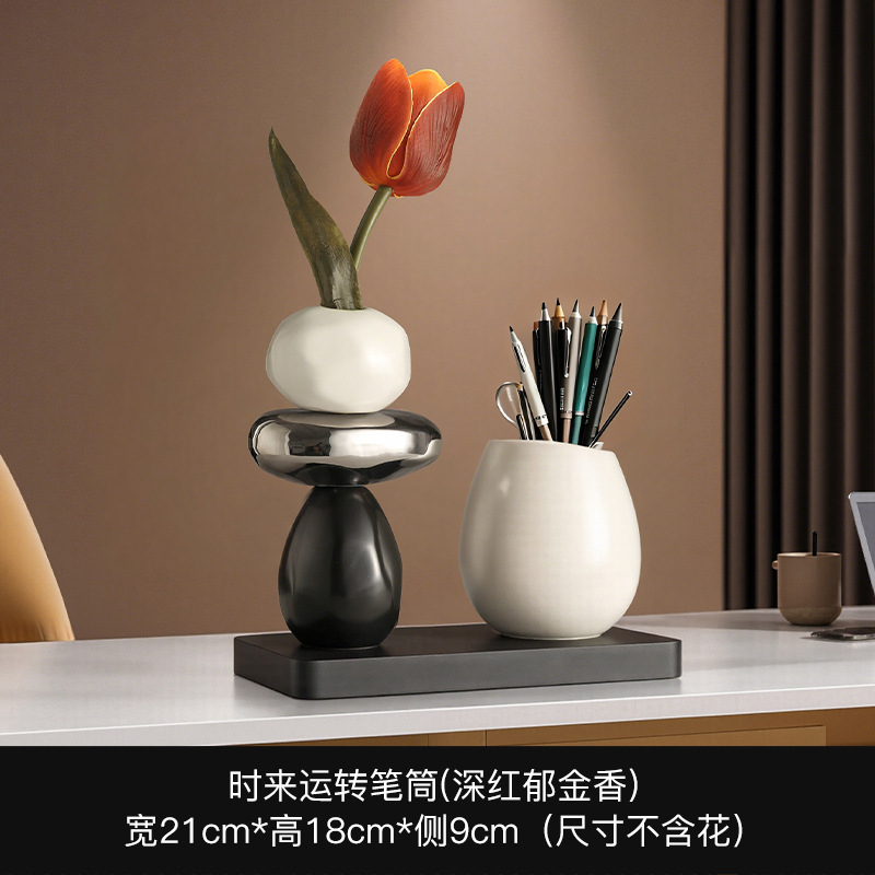 • 돌이 달리는 꽃병 펜 홀더 장식 + 어두운 튤립