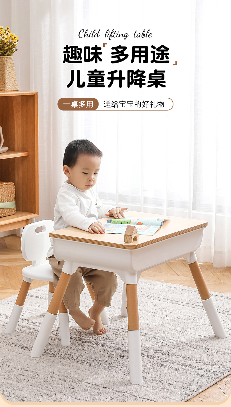재미있는 다기능 어린이 리프팅 테이블과 의자 홈 러닝 페인팅 게임 테이블 초등학생을위한 나무 학습 사각 테이블스토어 가기