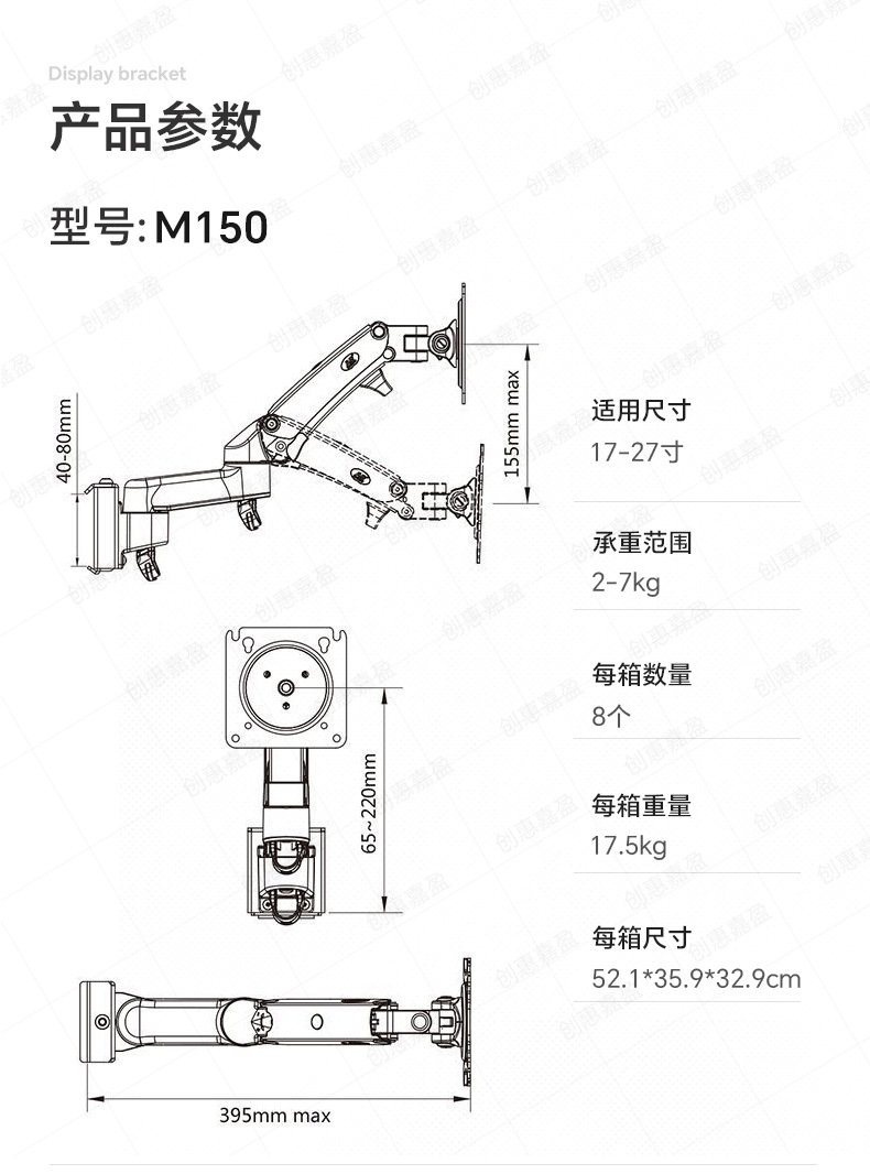 NB 컴퓨터 스크린 스탠드 벽걸이형 접이식 텔레스코픽 사무용 모니터 듀얼 스크린 M60/M80/M150 기계식 암스토어 가기