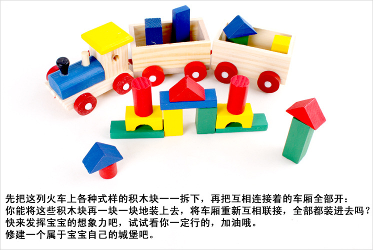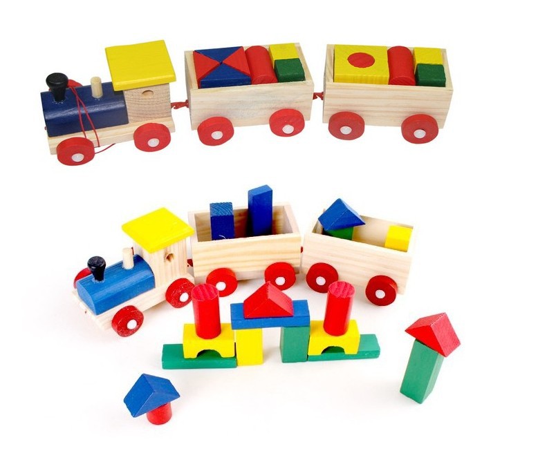 어린이 나무 빌딩 블록 작은 기차 조기 교육 3 섹션 트레일러 나무 부모-자식 대화식 조립 모양 조합 완구스토어 가기