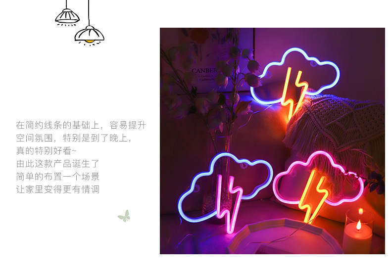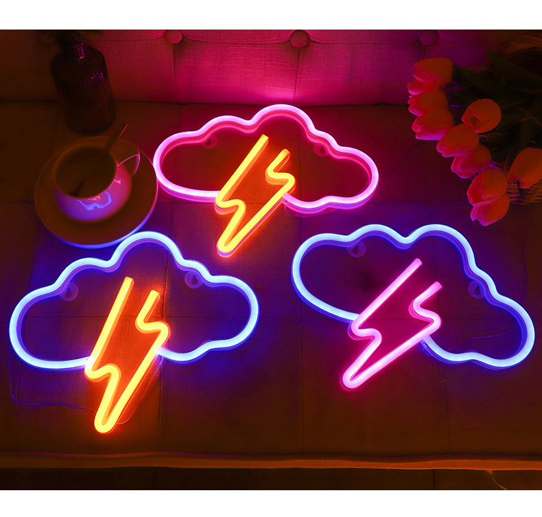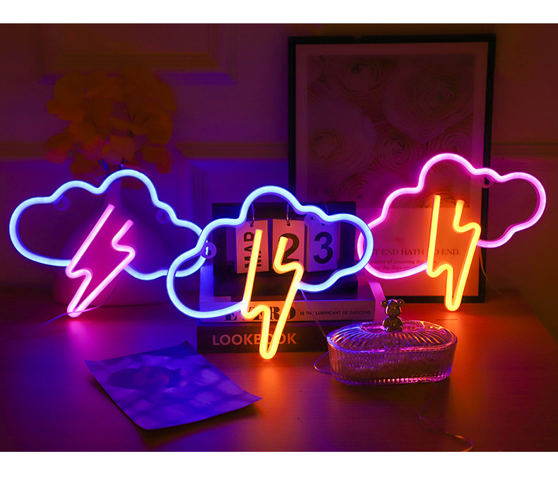 국경 간 새로운 LED 네온 뇌우 구름 번개 모델링 램프 야간 조명 창조적 인 침실 장식 램프 공장