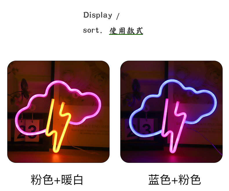 국경 간 새로운 LED 네온 뇌우 구름 번개 모델링 램프 야간 조명 창조적 인 침실 장식 램프 공장스토어 가기