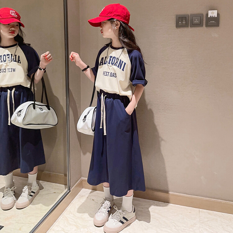 여아 정장 여름 2024 새로운 유행 아동복 아동 여름 의류 큰 아동 스포츠 얇은 투피스 세트 여름 트렌드스토어 가기