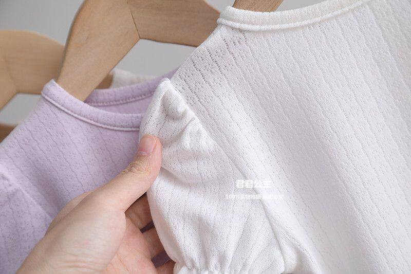 여아 반팔 티셔츠 여름 새로운 어린이 아기 퍼프 슬리브 베이스 셔츠 여름 옷 아기 얇은 반팔 탑