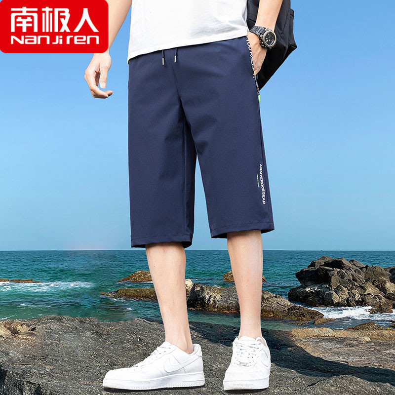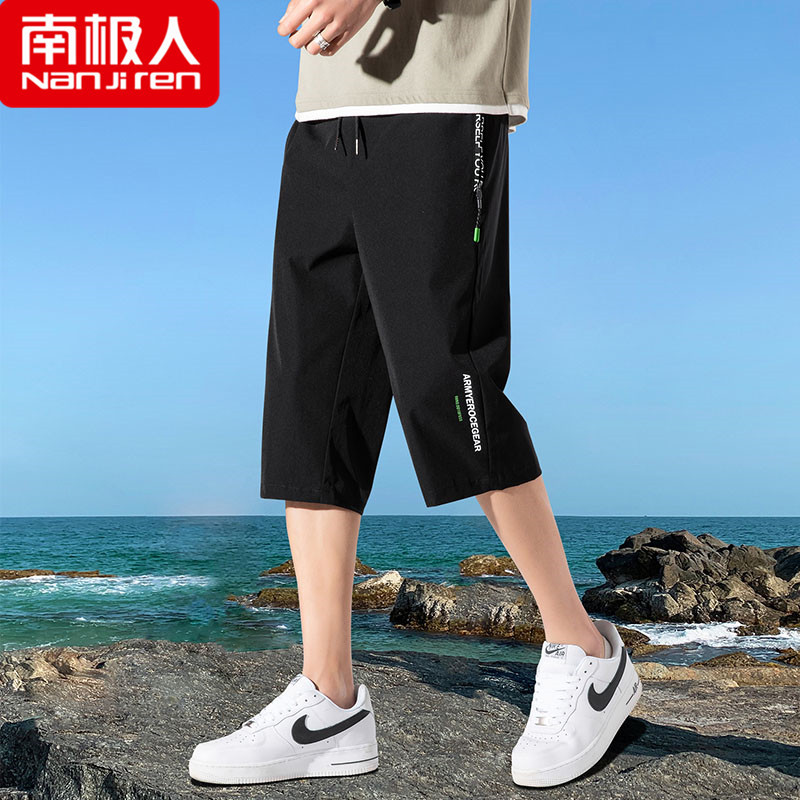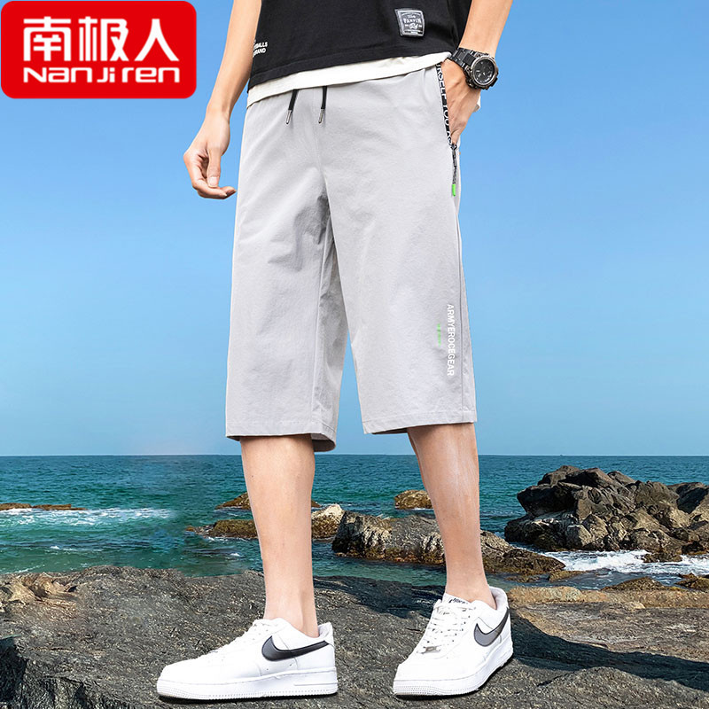 아이스 실크 7 점 바지 남성용 반바지 여름 겉옷 루즈한 스포츠 비치 바지 얇은 캐주얼 바지 5 점 속건스토어 가기
