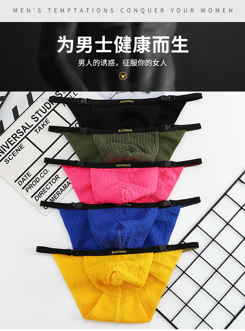 Kaixuan 남성 속옷 니트 하이 포크 브리프 패션 재미 낮은 허리 단색 통기성 바지 크로스 보더 트렌디 남성