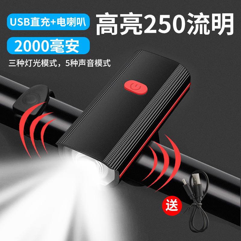 자전거 라이트 충전 혼 헤드라이트 USB 다기능 야간 라이딩 야간 낚시 밝은 산악 자전거 라이트 액세서리 LED스토어 가기