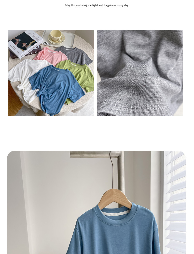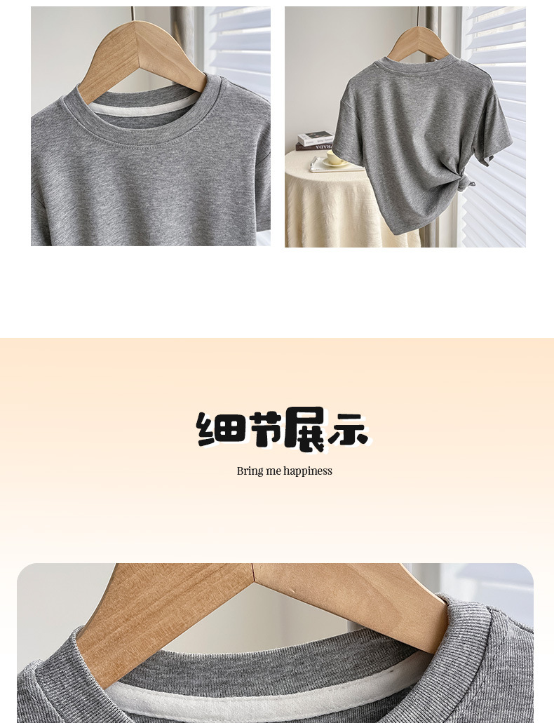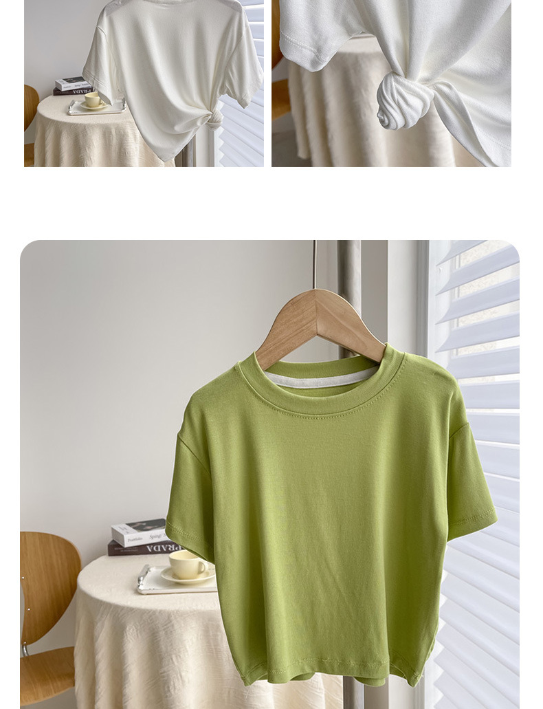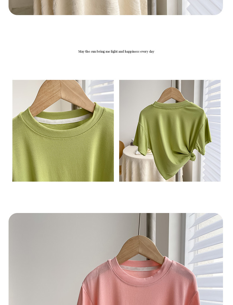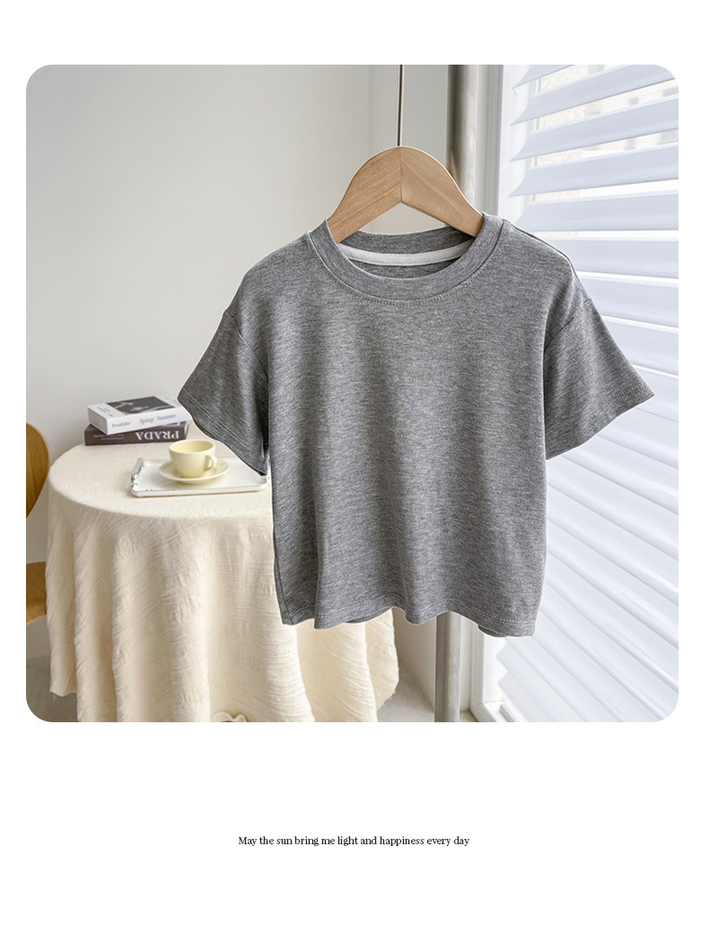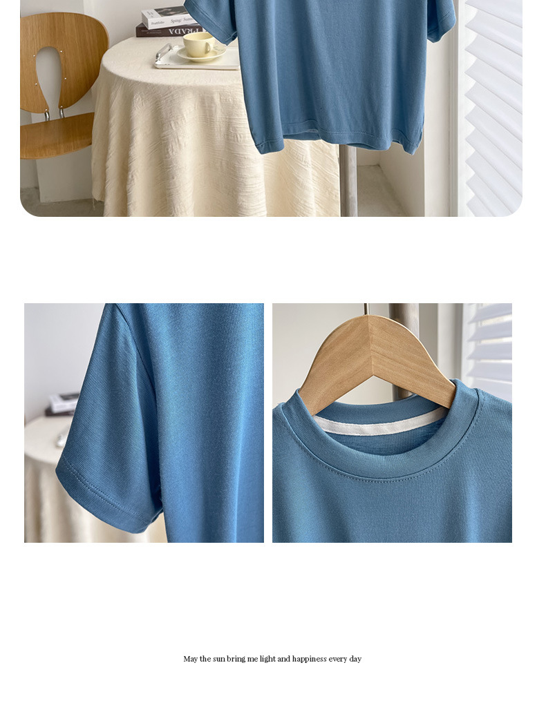 한국어 스타일 어린이 여름 솔리드 컬러 반팔 티셔츠 소년 모달 아동 의류 아기 소녀 라운드 넥 얇은 마스크 탑스토어 가기