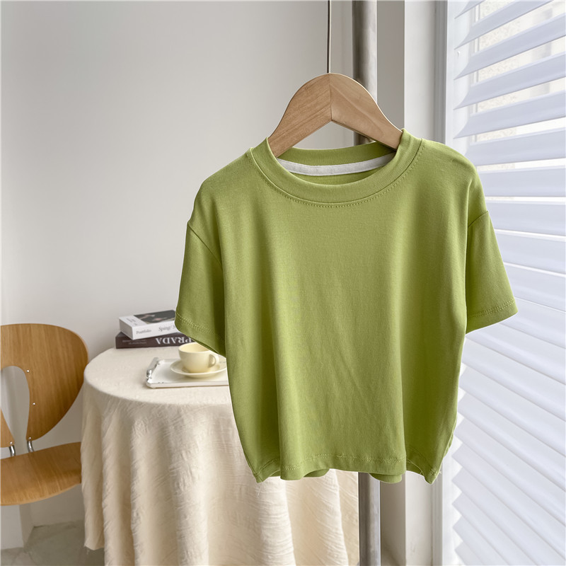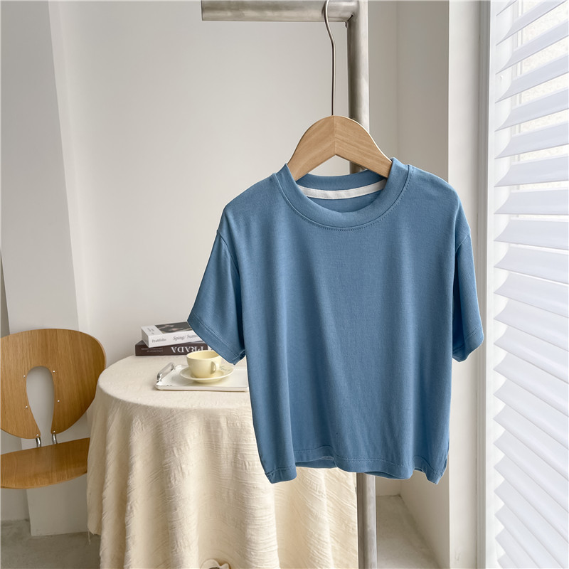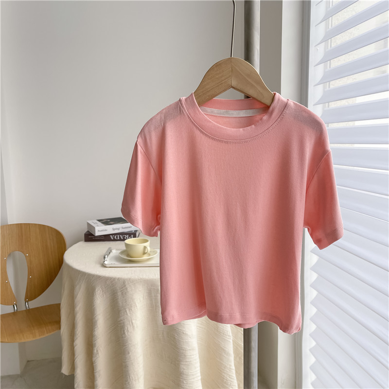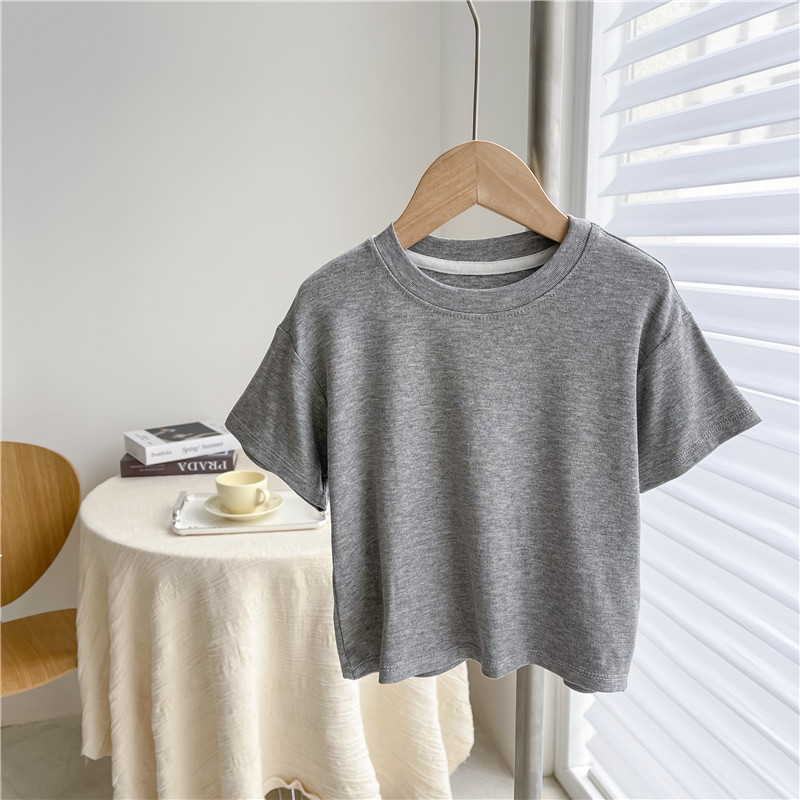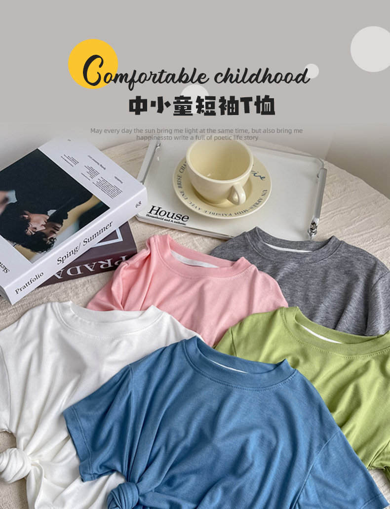 한국어 스타일 어린이 여름 솔리드 컬러 반팔 티셔츠 소년 모달 아동 의류 아기 소녀 라운드 넥 얇은 마스크 탑