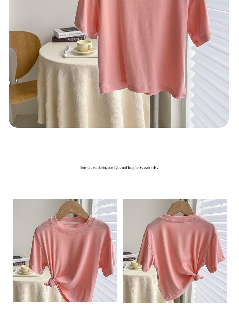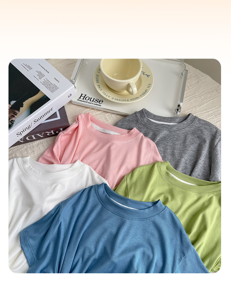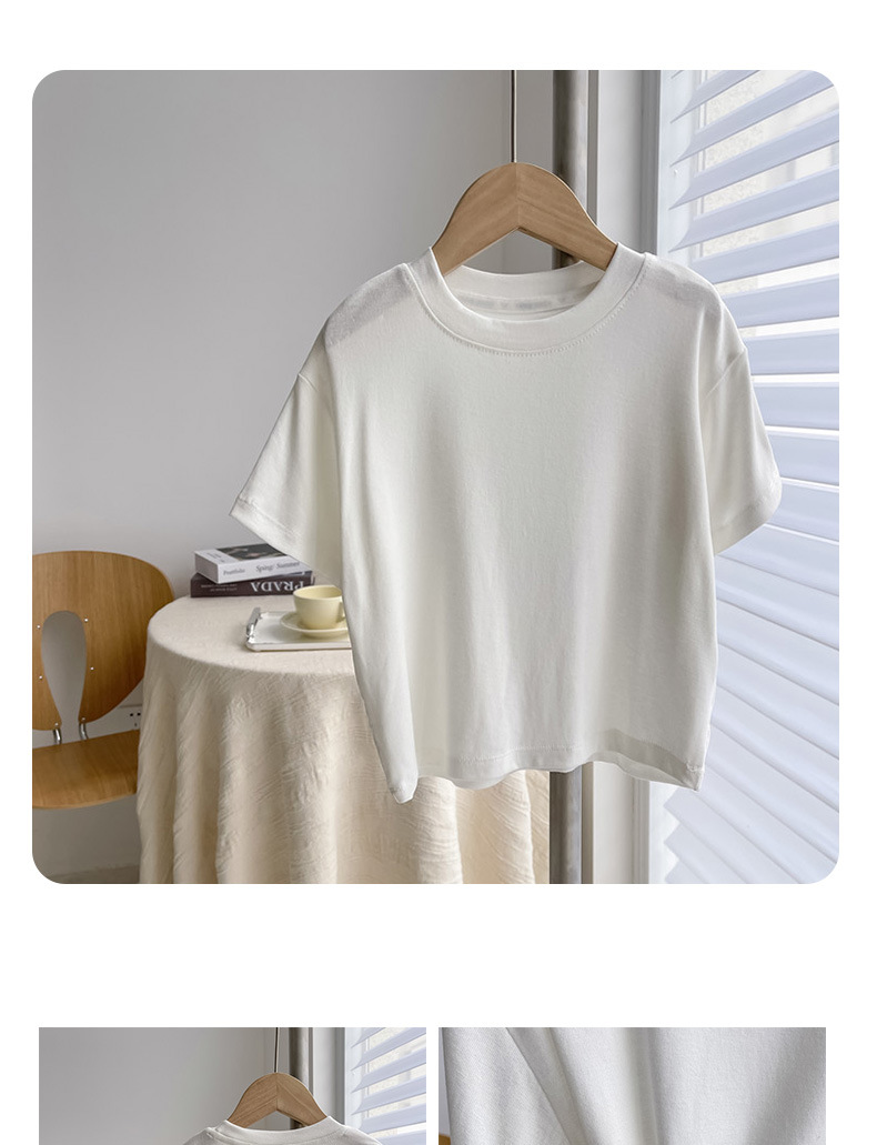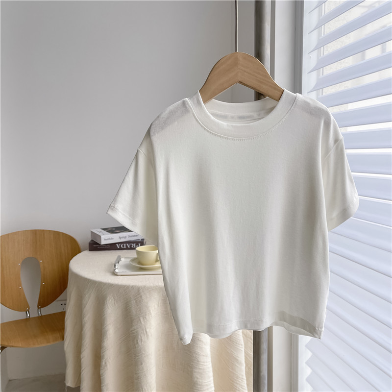 한국어 스타일 어린이 여름 솔리드 컬러 반팔 티셔츠 소년 모달 아동 의류 아기 소녀 라운드 넥 얇은 마스크 탑