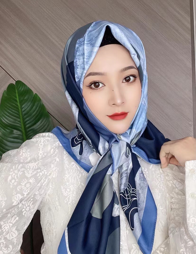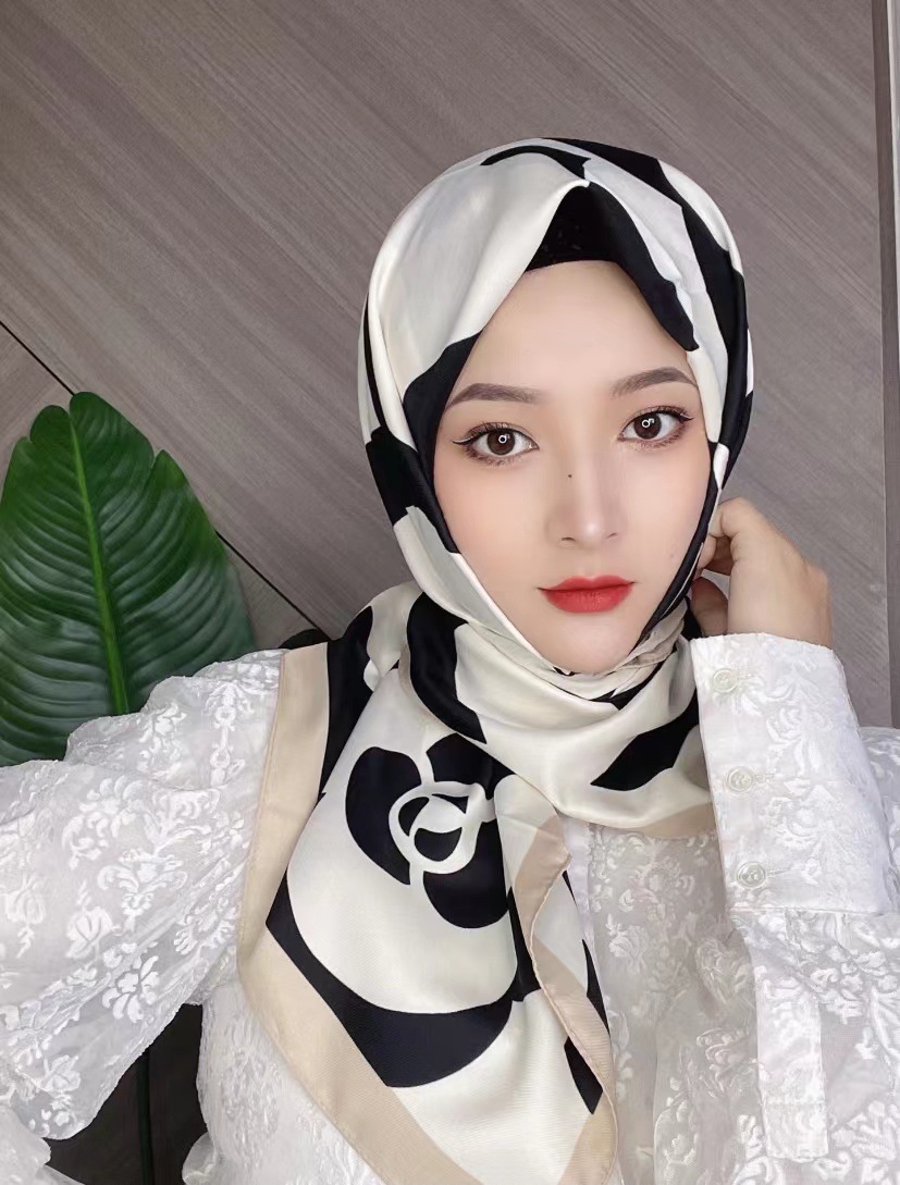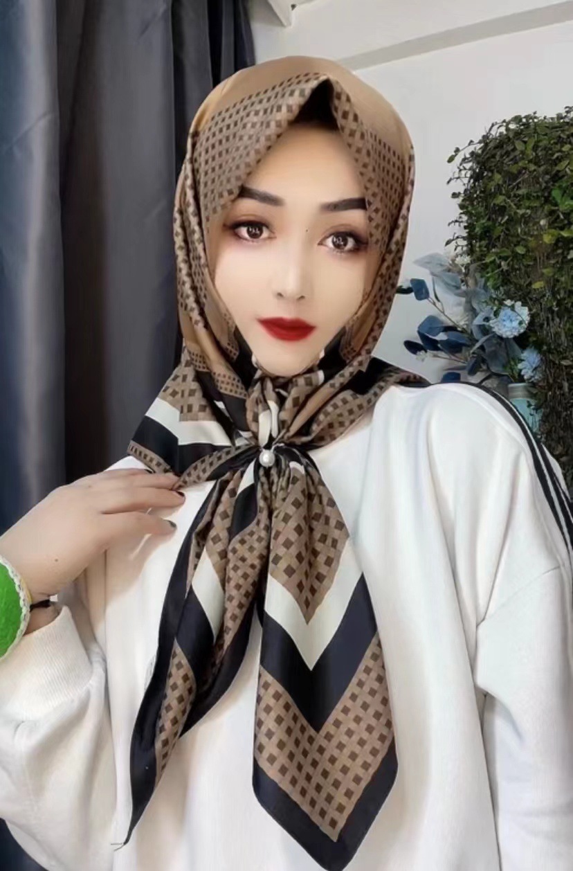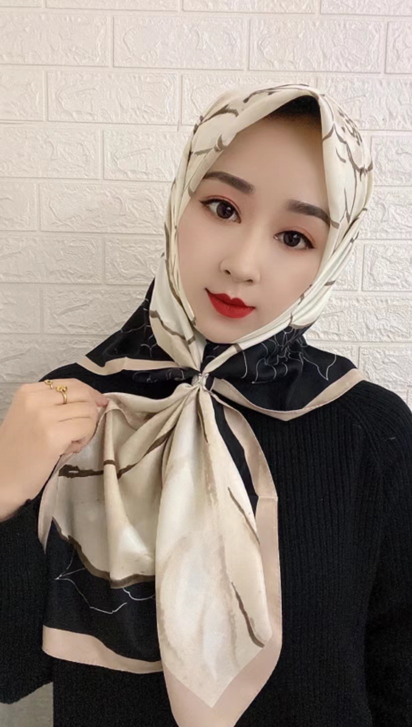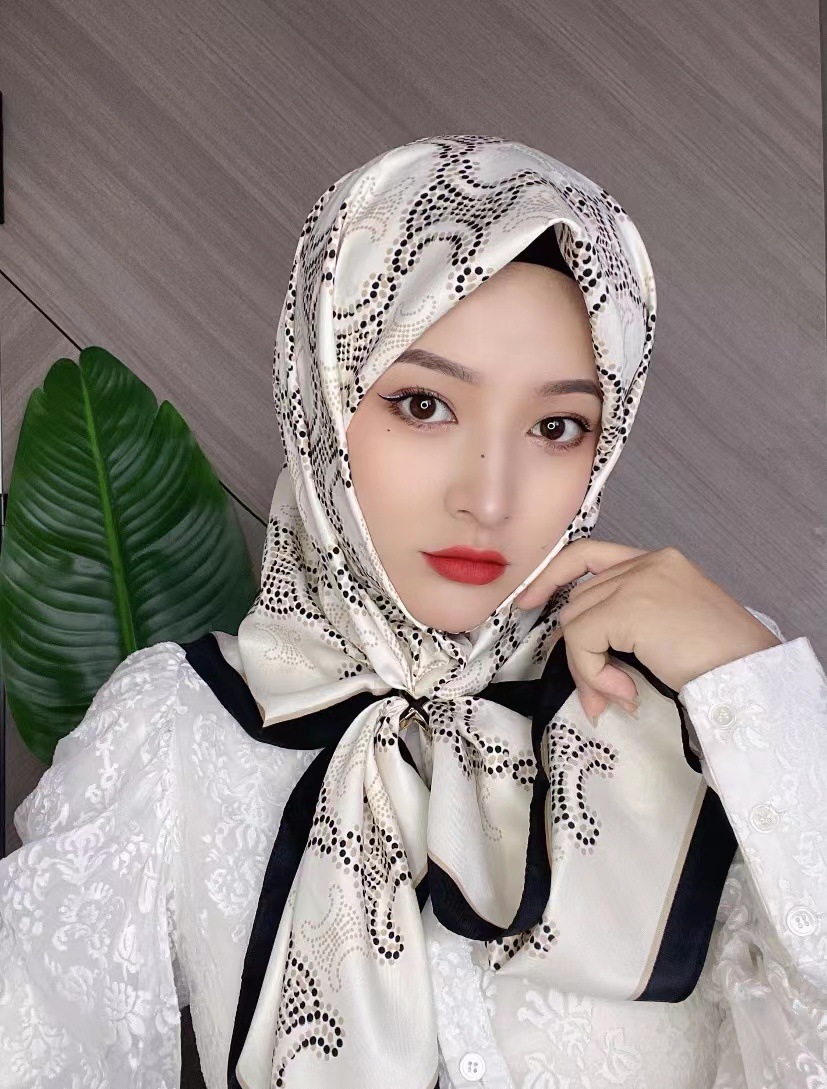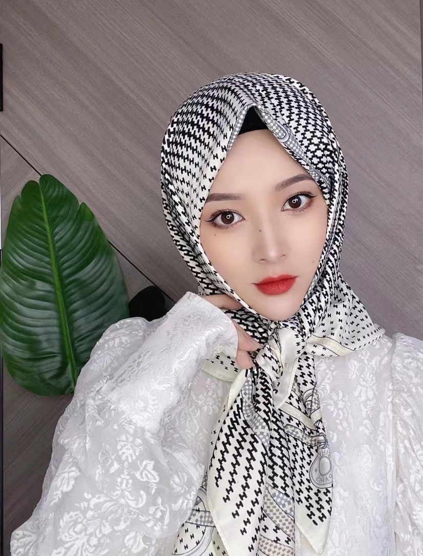 새로운 90cm 능직 새틴 대형 사각 인쇄 실크 스카프 캐주얼 머리 스카프 빠른 손 사이버 연예인 스카프 헤어 재고