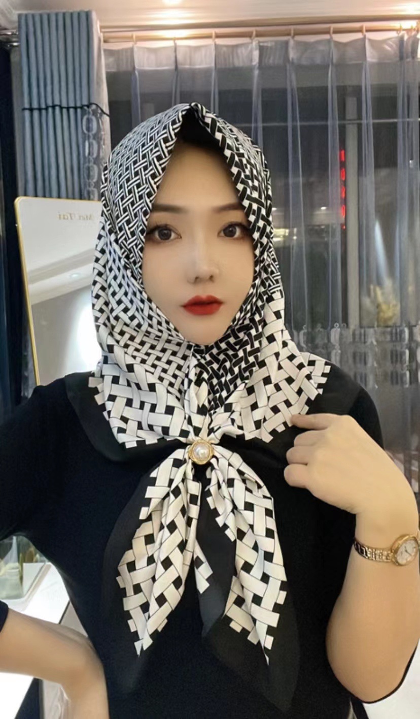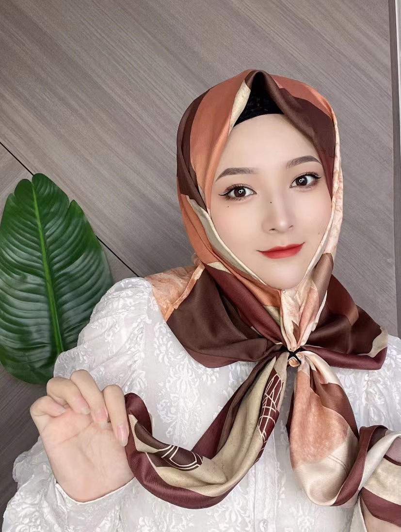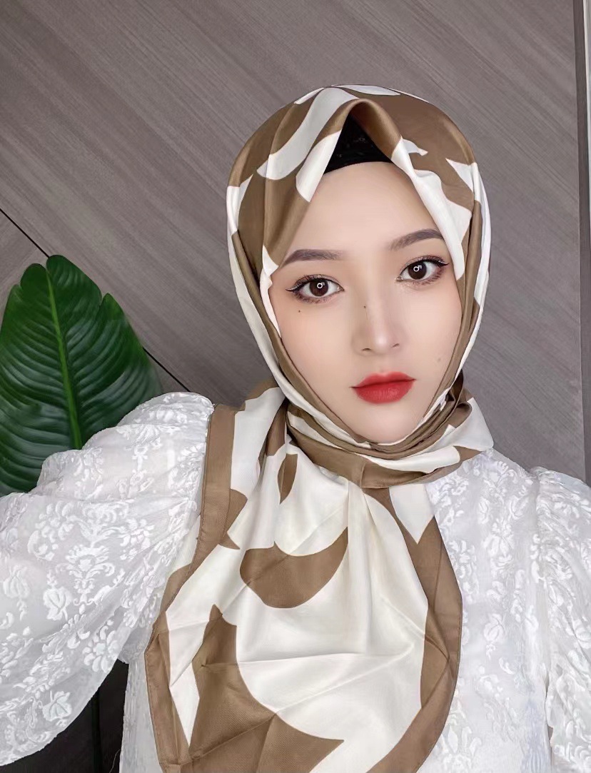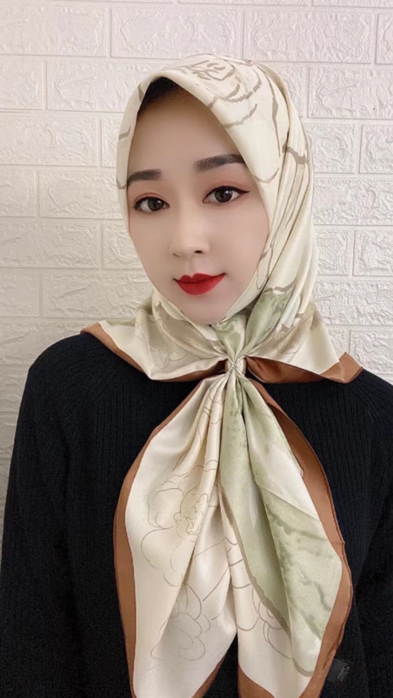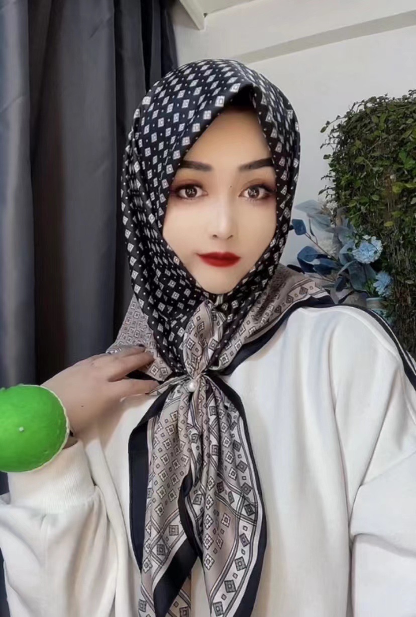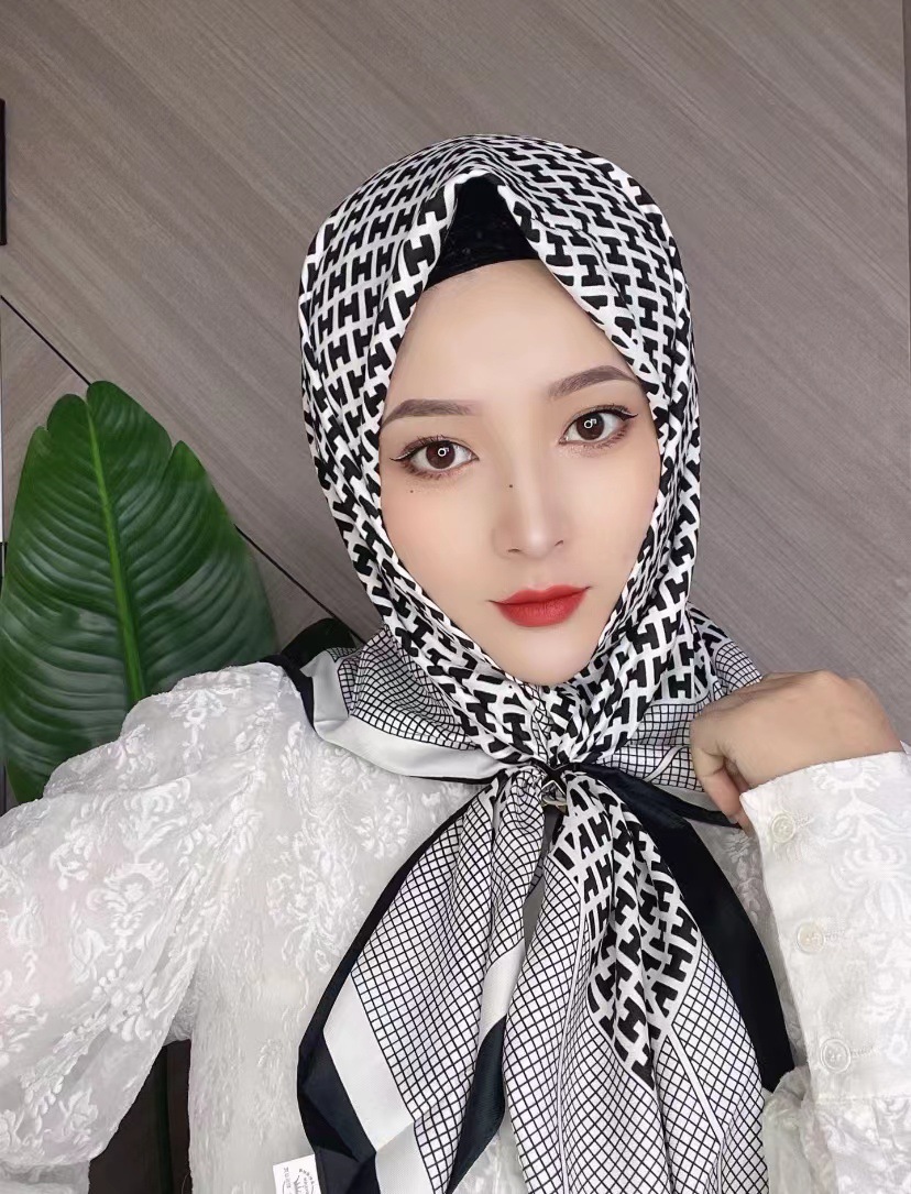새로운 90cm 능직 새틴 대형 사각 인쇄 실크 스카프 캐주얼 머리 스카프 빠른 손 사이버 연예인 스카프 헤어 재고