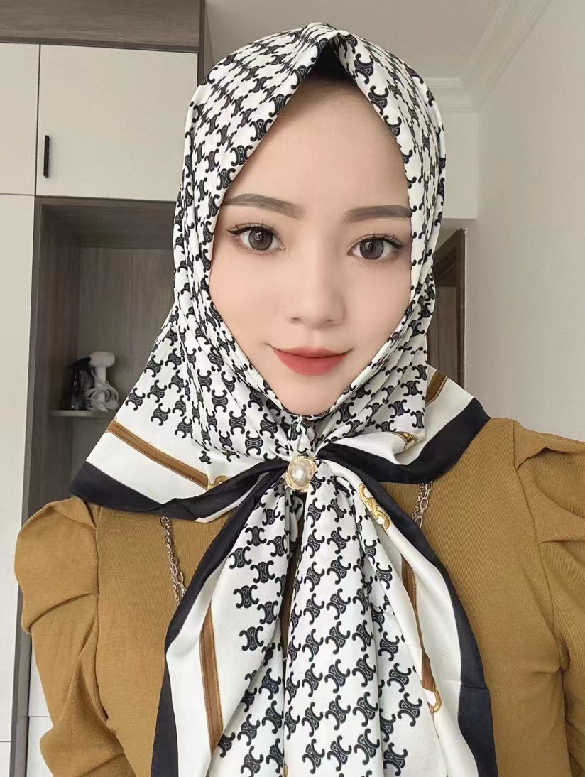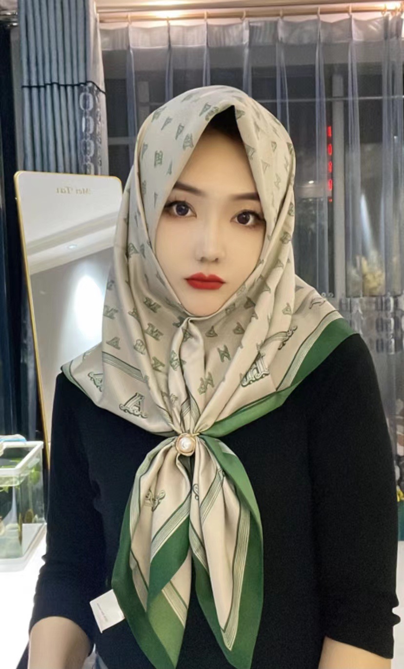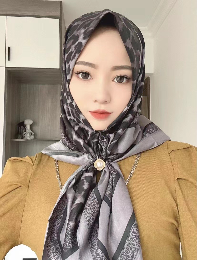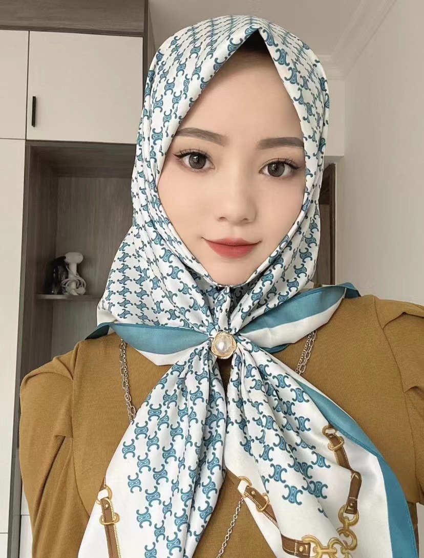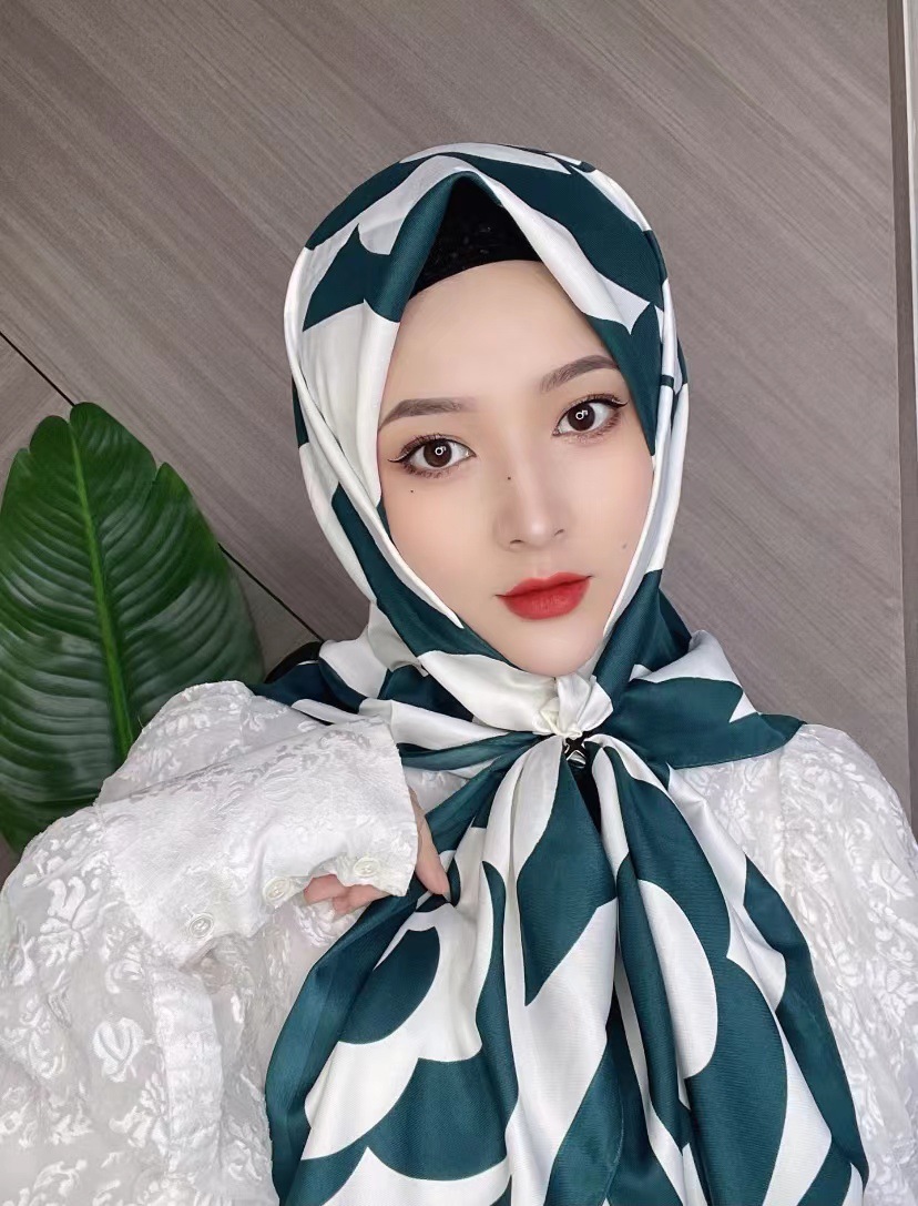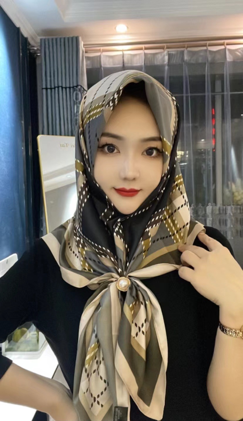 새로운 90cm 능직 새틴 대형 사각 인쇄 실크 스카프 캐주얼 머리 스카프 빠른 손 사이버 연예인 스카프 헤어 재고