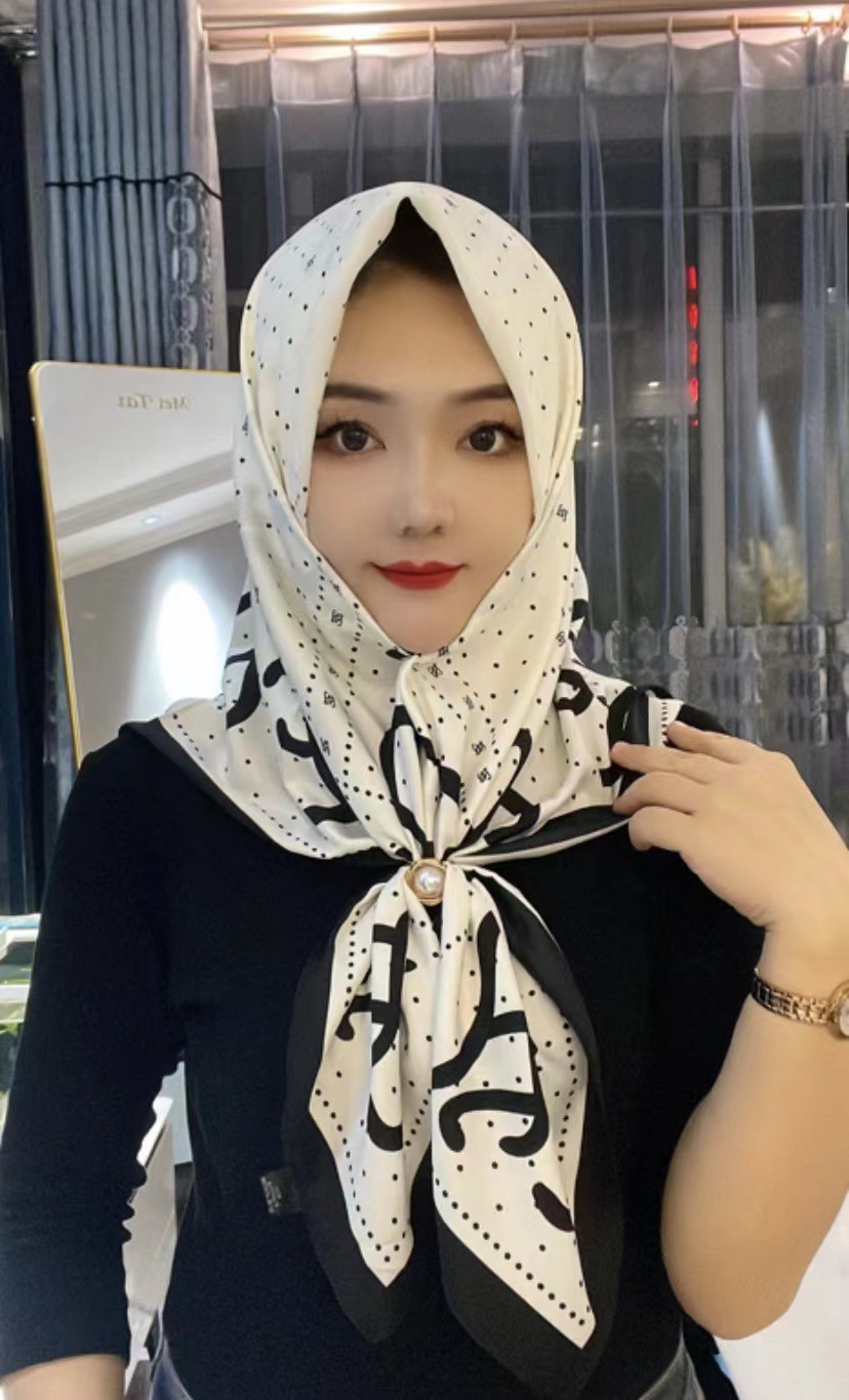 새로운 90cm 능직 새틴 대형 사각 인쇄 실크 스카프 캐주얼 머리 스카프 빠른 손 사이버 연예인 스카프 헤어 재고스토어 가기