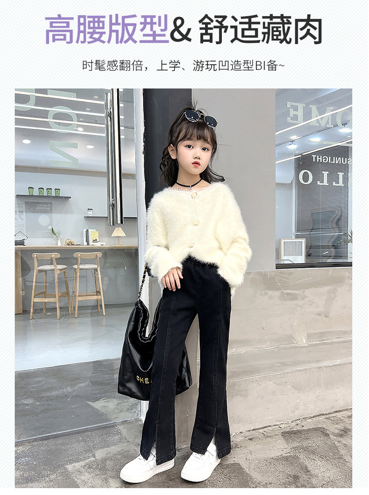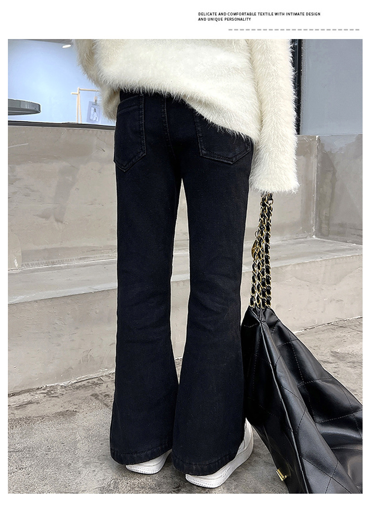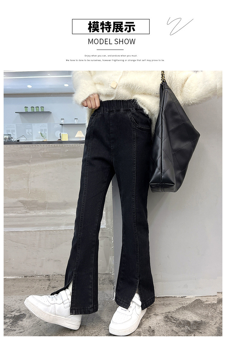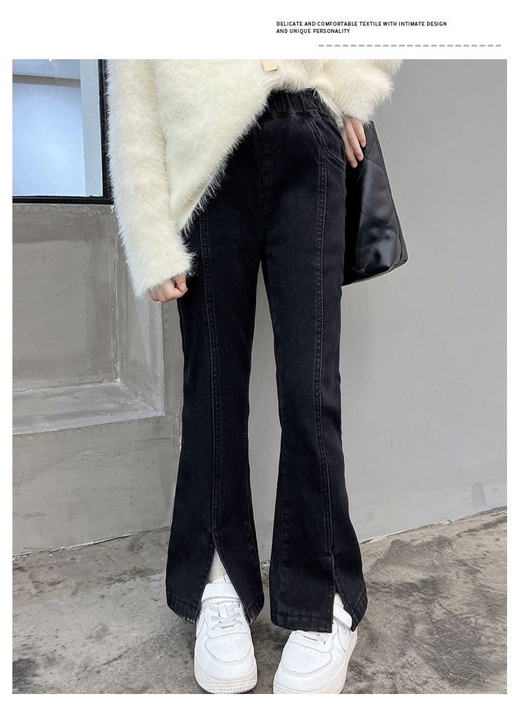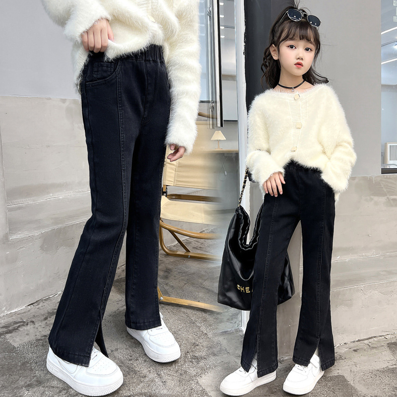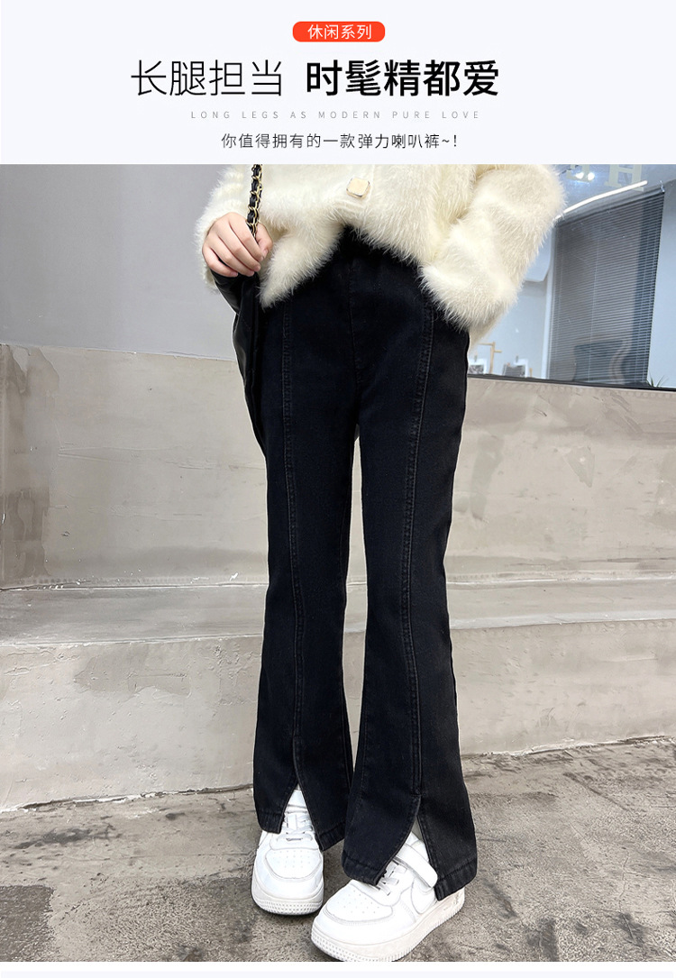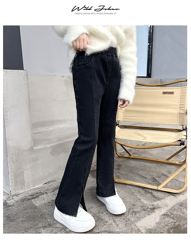 여아 가을 겨울 트임 플레어 팬츠 2025 신상 중대형 아동용 청바지 아동용 플리스 안감 신축성 바지