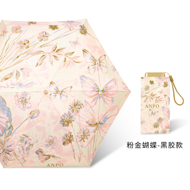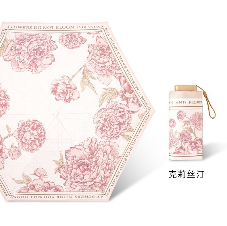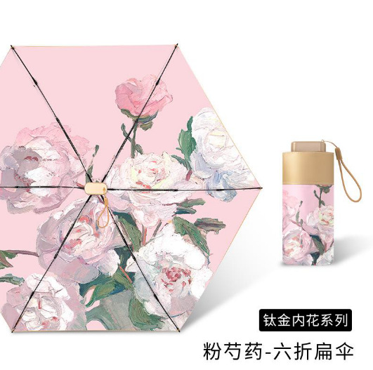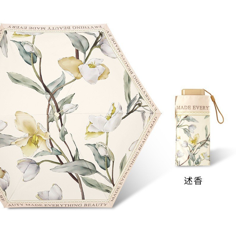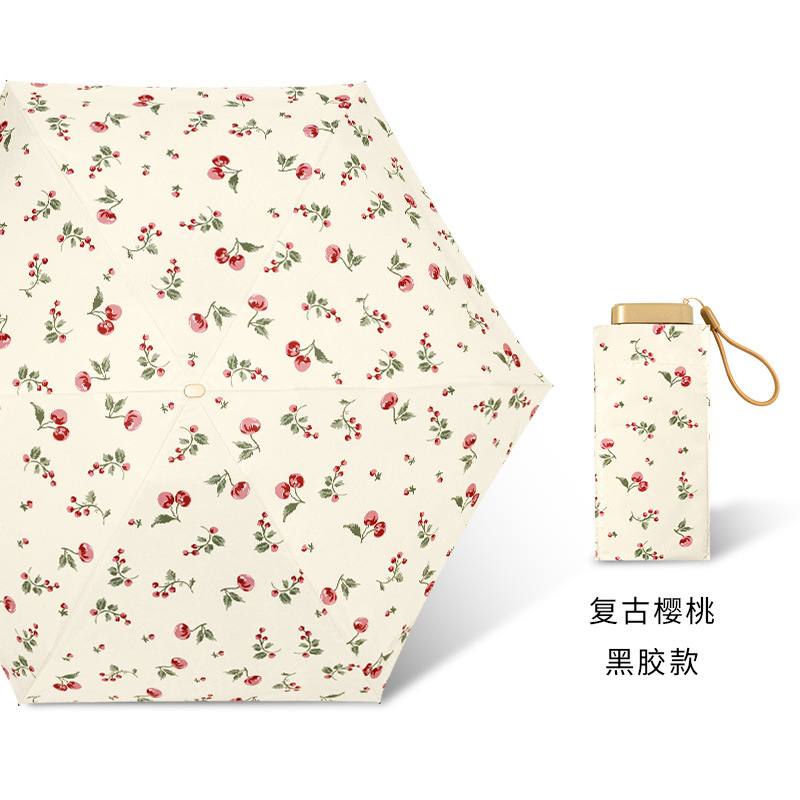 6 중 포켓 자외선 차단제 우산 소형 휴대용 이중 사용 맑고 비오는 우산 여성용 접이식 미니 양산 태양 우산