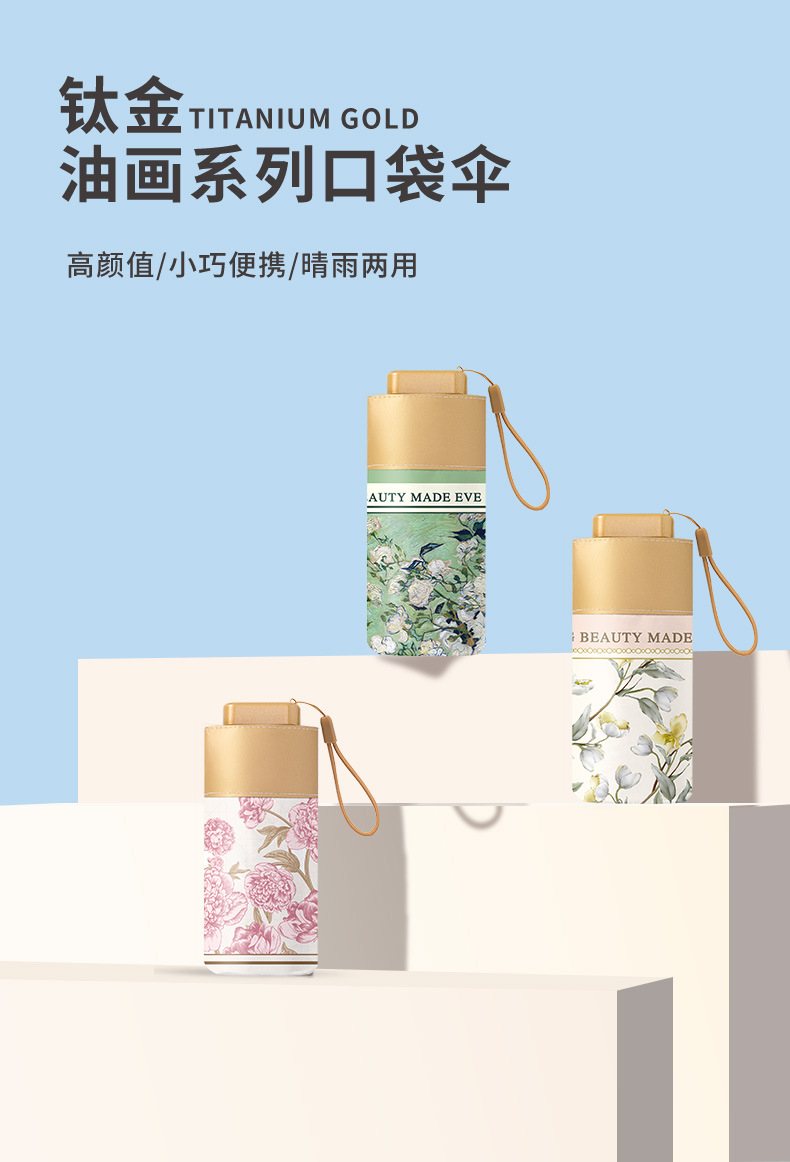 6 중 포켓 자외선 차단제 우산 소형 휴대용 이중 사용 맑고 비오는 우산 여성용 접이식 미니 양산 태양 우산스토어 가기