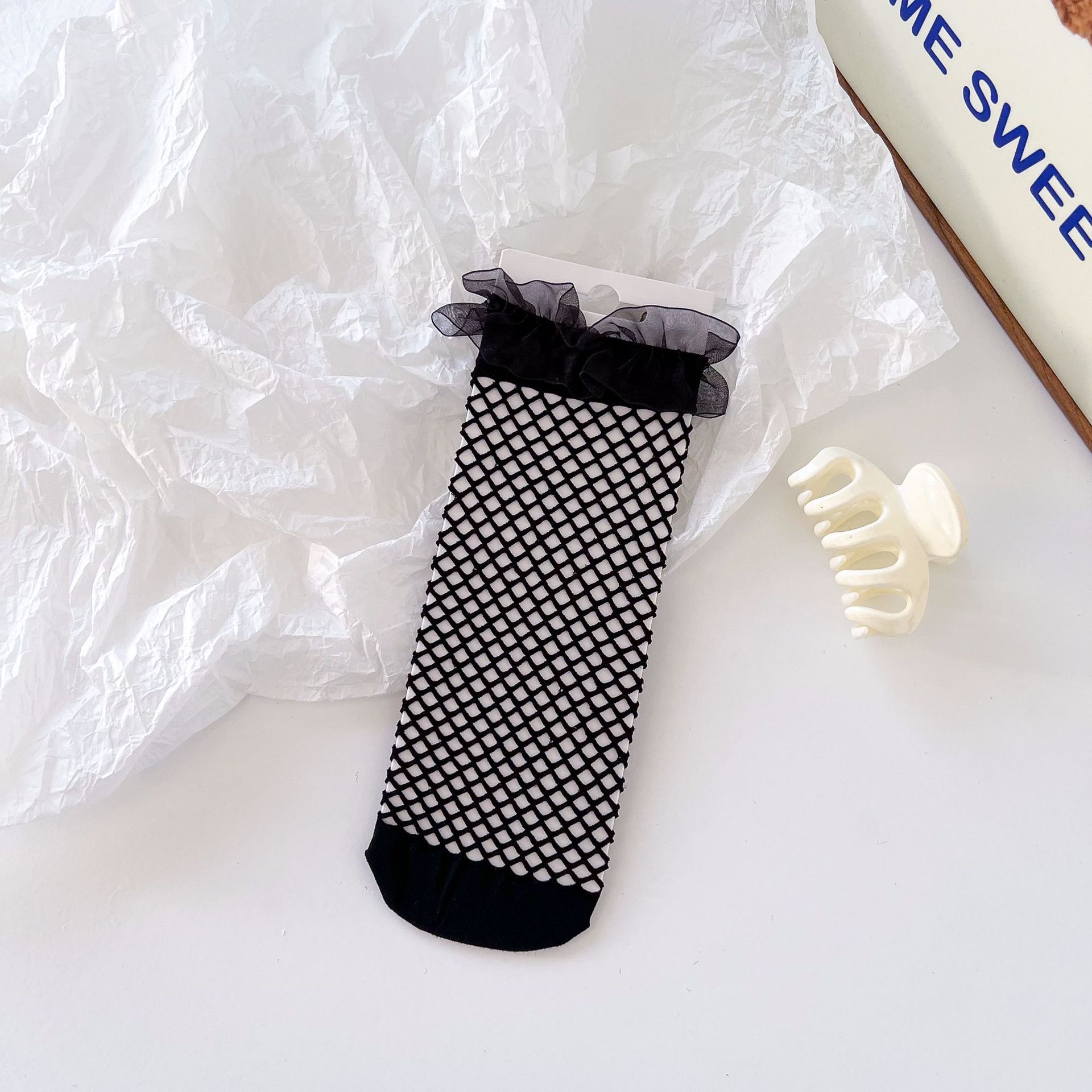 JK 미드 튜브 양말 fishnet 투각 레이스 활 짧은 양말 로리타 착용 대상 양말 JK 소녀 망사 양말