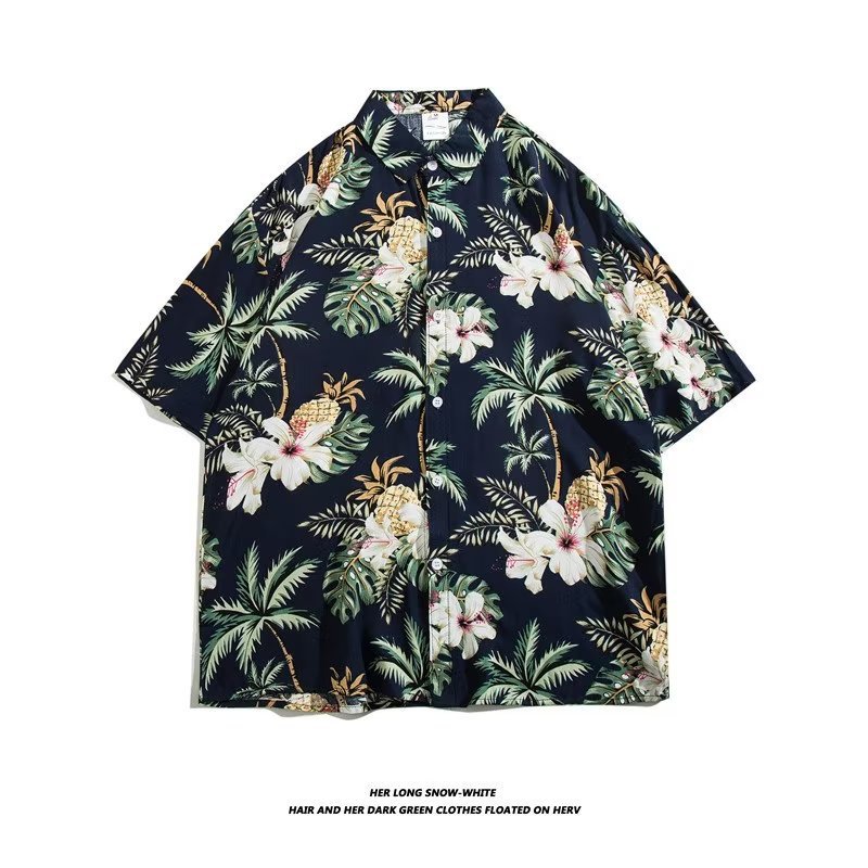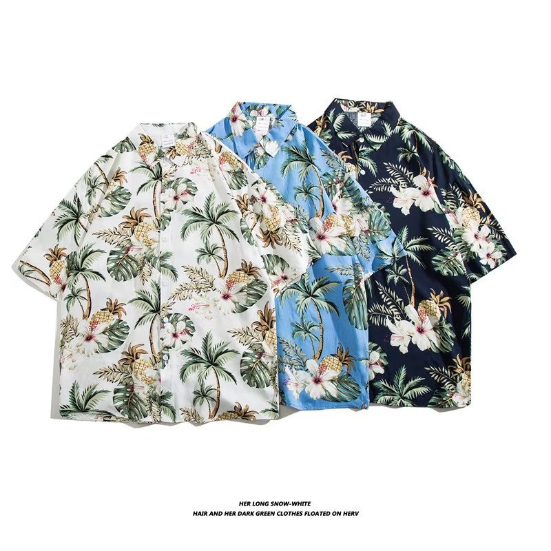 하와이 꽃 반팔 셔츠 남자 느슨한 여름 셔츠 비치 유행 브랜드 캐주얼 셔츠 소년 청소년을위한 셔츠스토어 가기