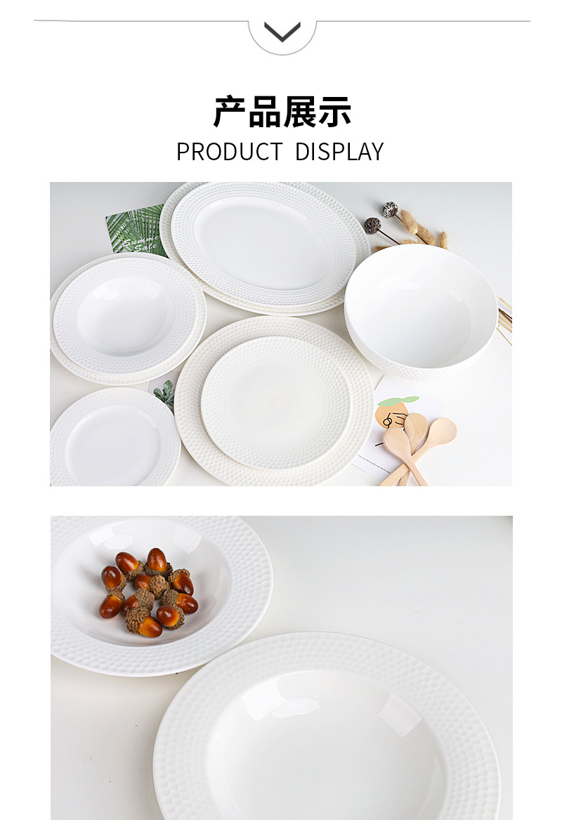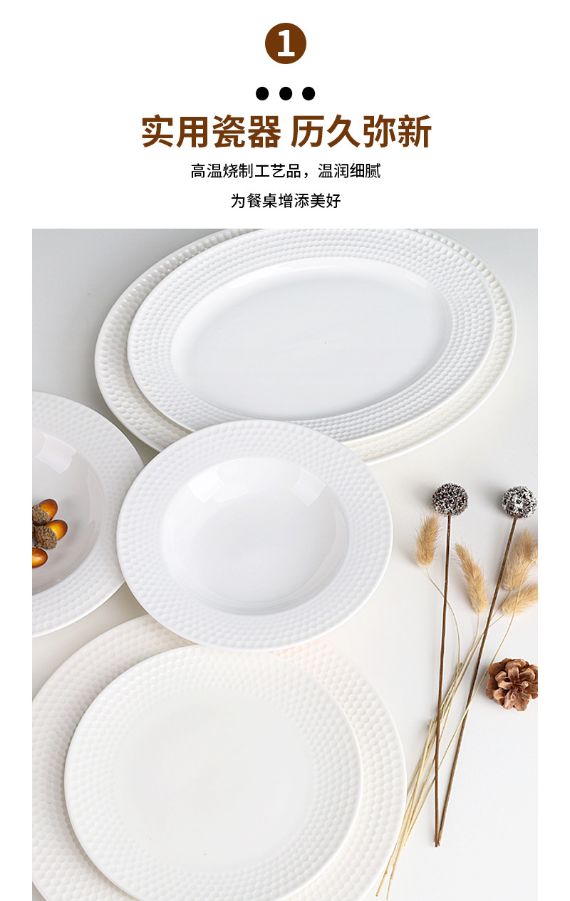 북유럽 세라믹 화이트 디너 플레이트 간단한 접시 접시 생선 접시 밥 그릇 가정용 레스토랑 호텔 화이트 도자기 식기 도매