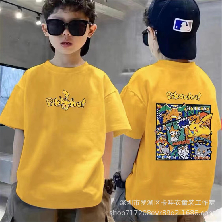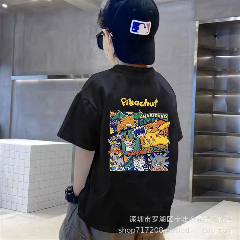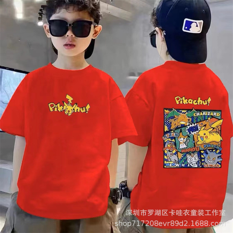 코튼 어린이 반팔 여름 새로운 어린이 비키츄 남성과 여성을위한 유행 프린트 탑 티셔츠스토어 가기