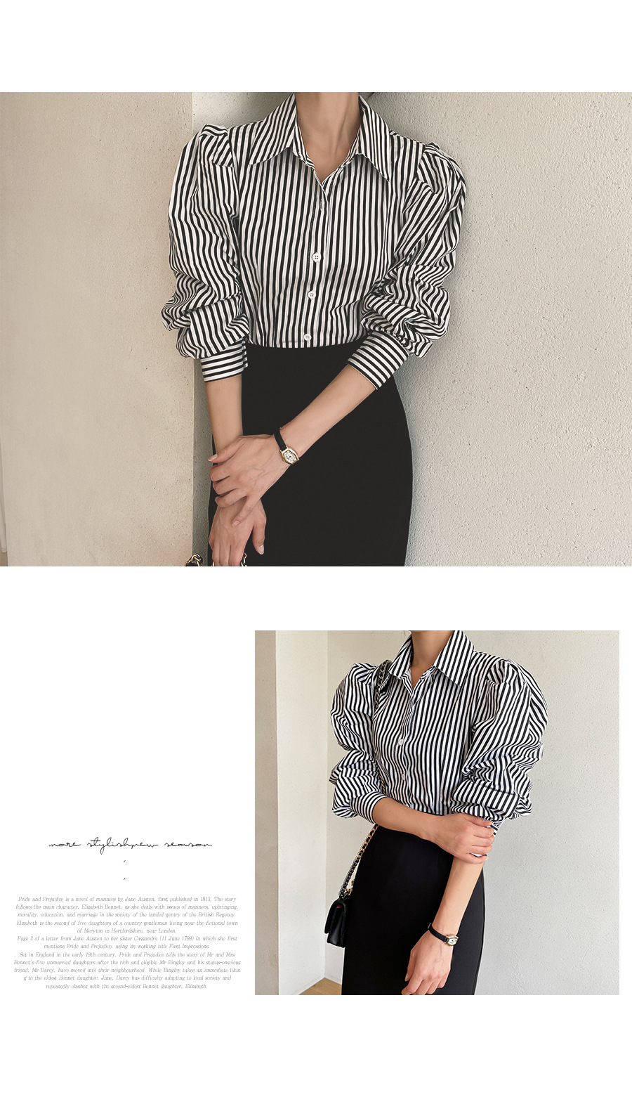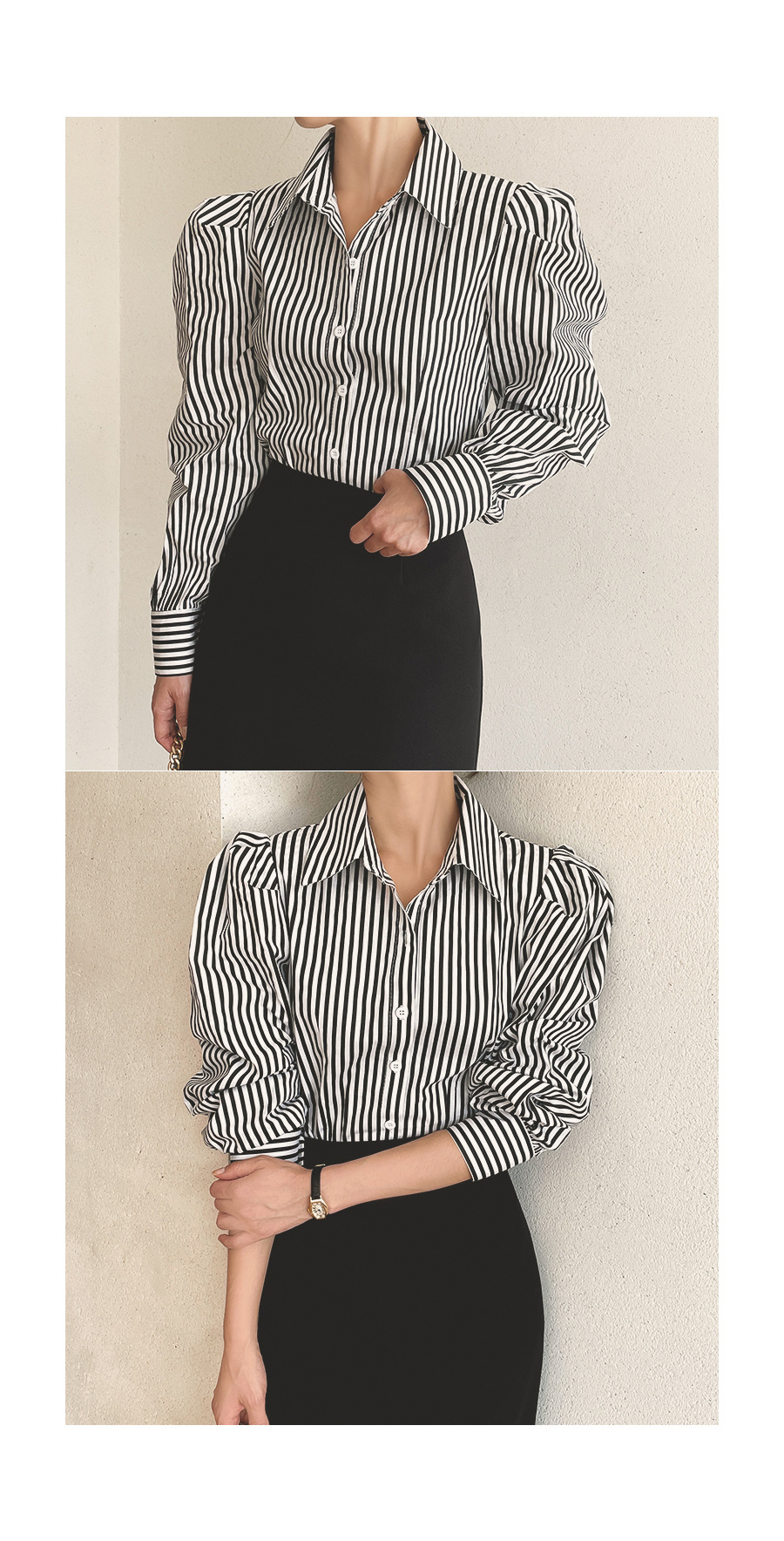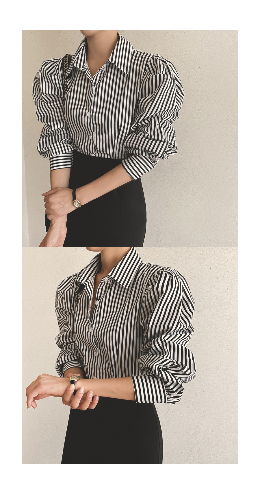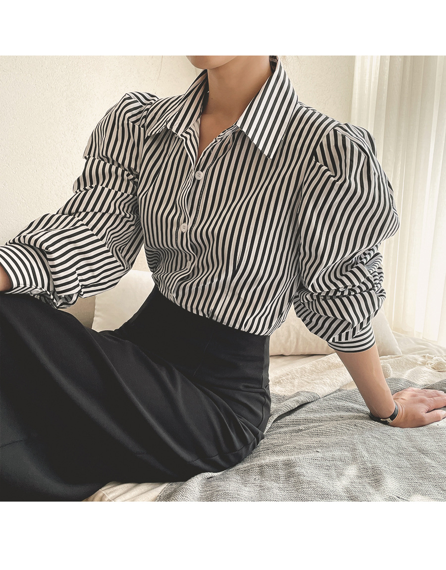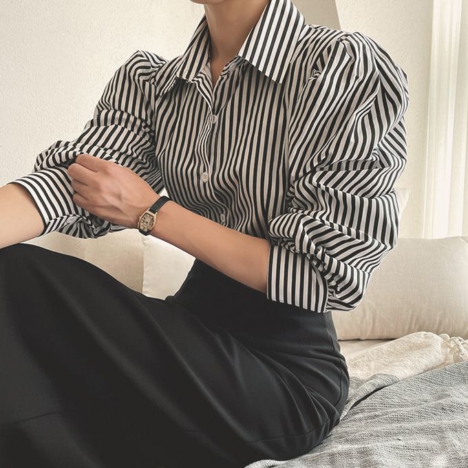 세련된 가을 새로운 패션 우아한 디자인 감각 버블 슬리브 탑 셔츠스토어 가기