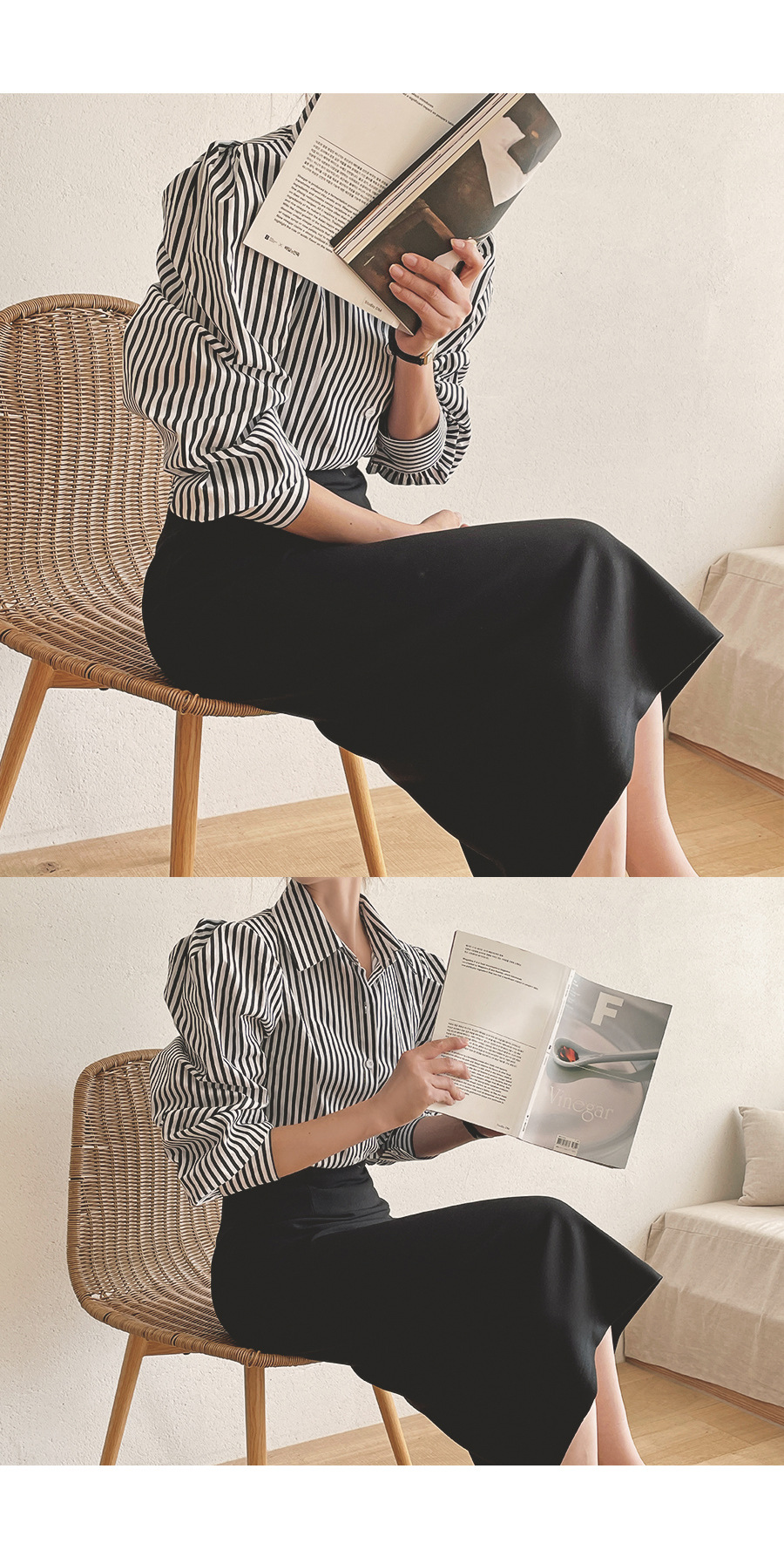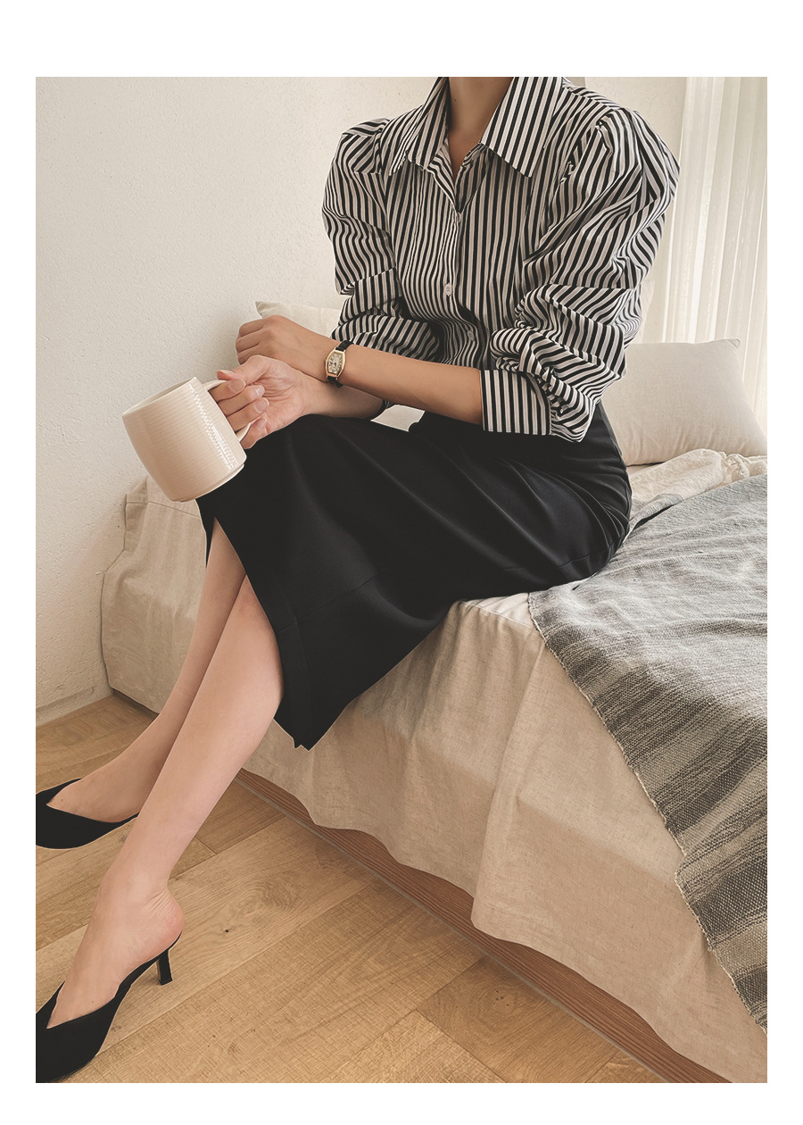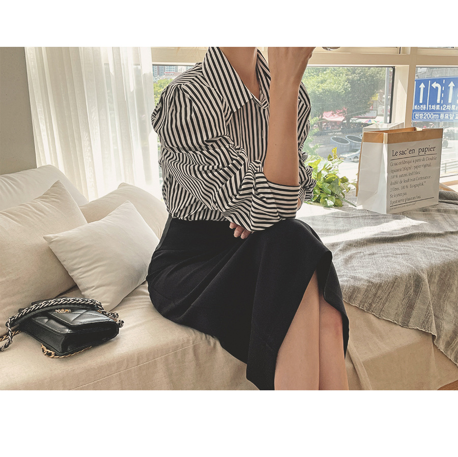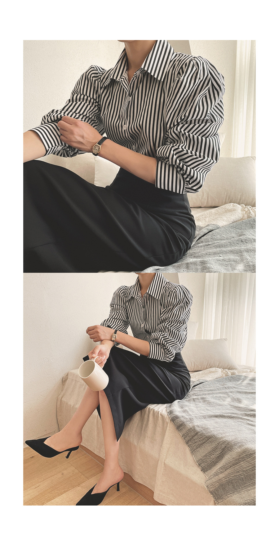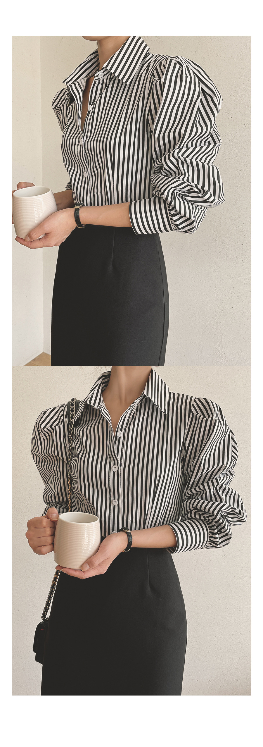 세련된 가을 새로운 패션 우아한 디자인 감각 버블 슬리브 탑 셔츠스토어 가기