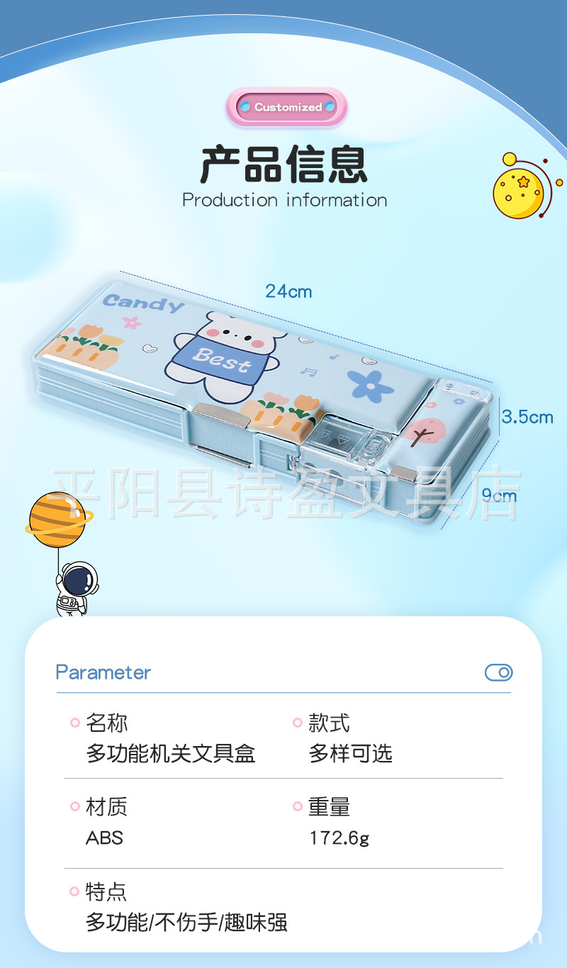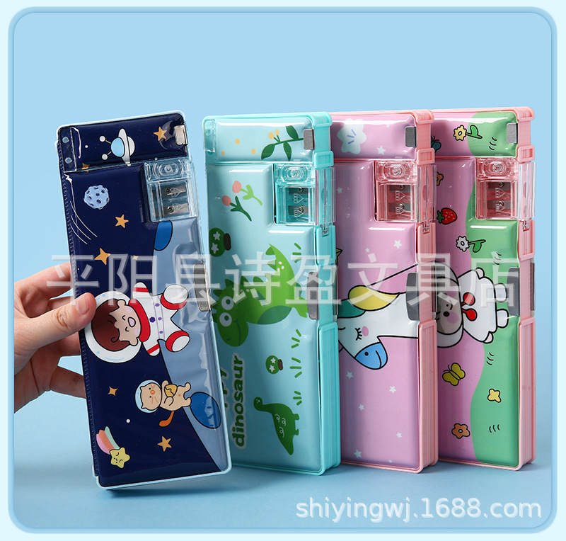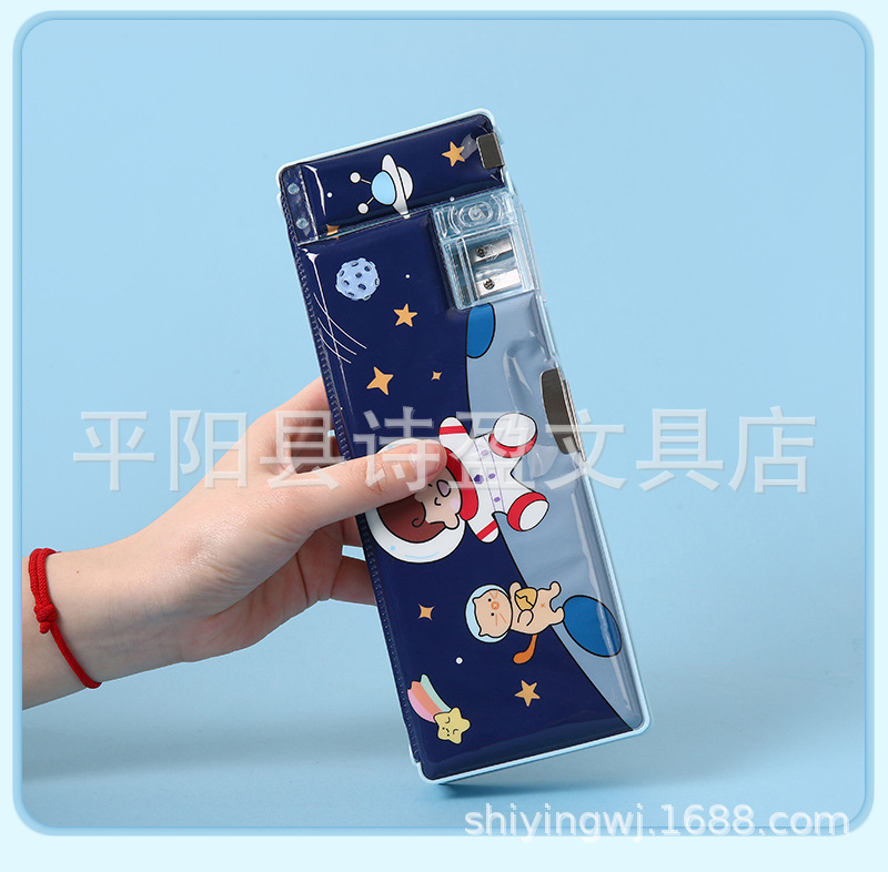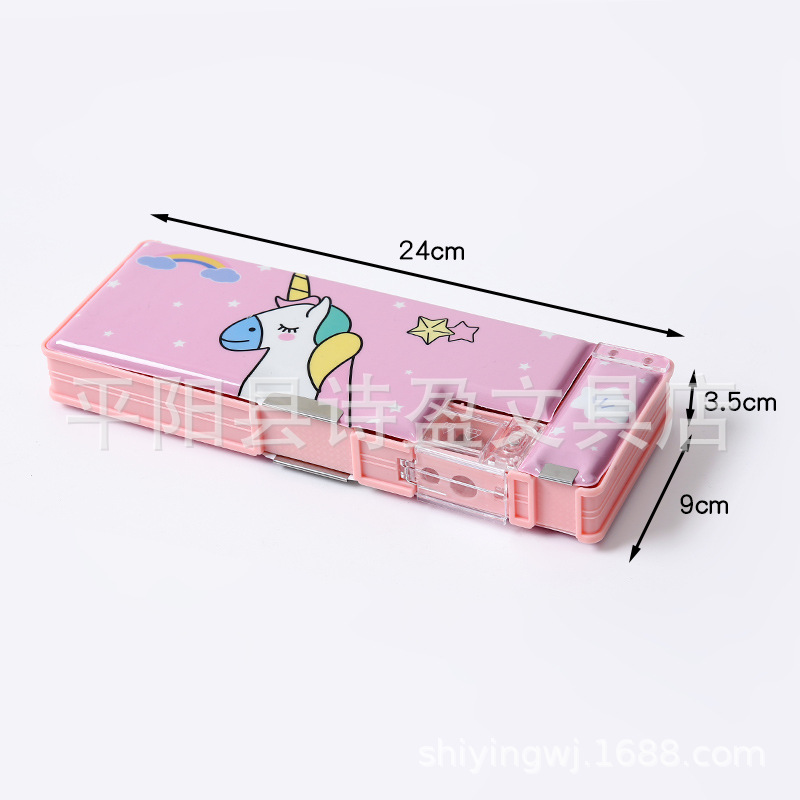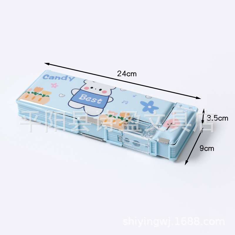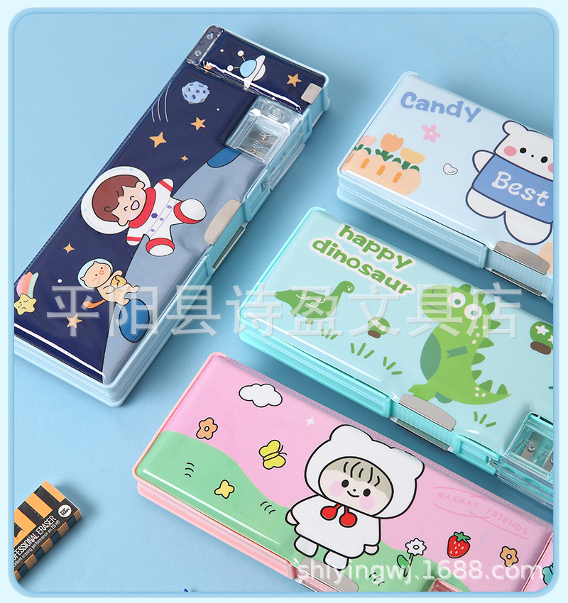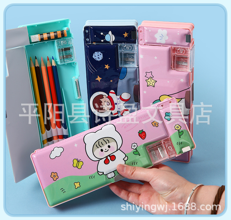 어린 소녀 초등학생을위한 귀여운 창조적 인 문구 상자 소년 필통 선물을위한 이중 문 다기능 대용량 필통