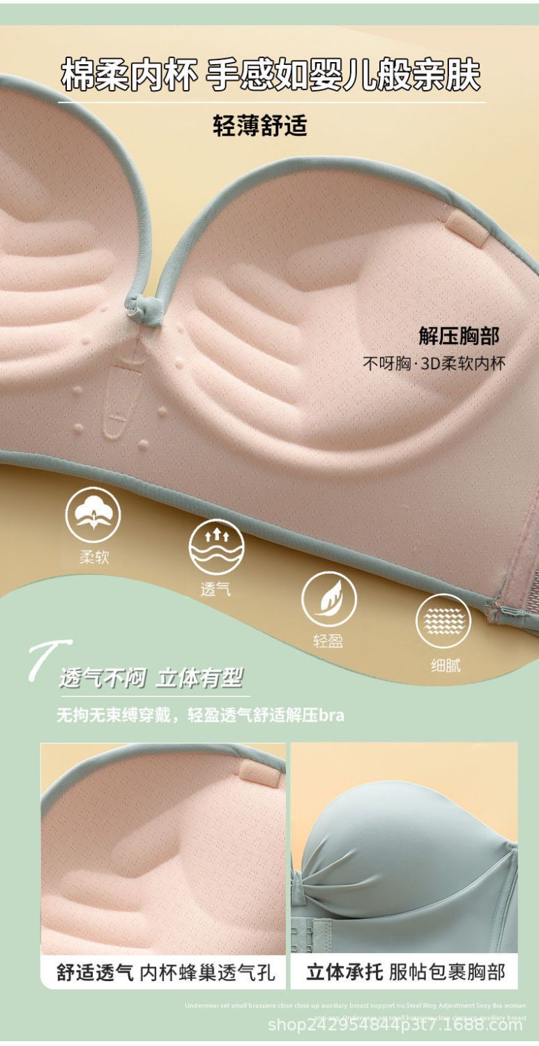 끈이 없는 속옷 여성용 작은 가슴 푸시 업 미끄럼 방지 달리기 No-Mark 끈이 없는 튜브 탑 내부 보이지 않는 아름다운 등 브래지어