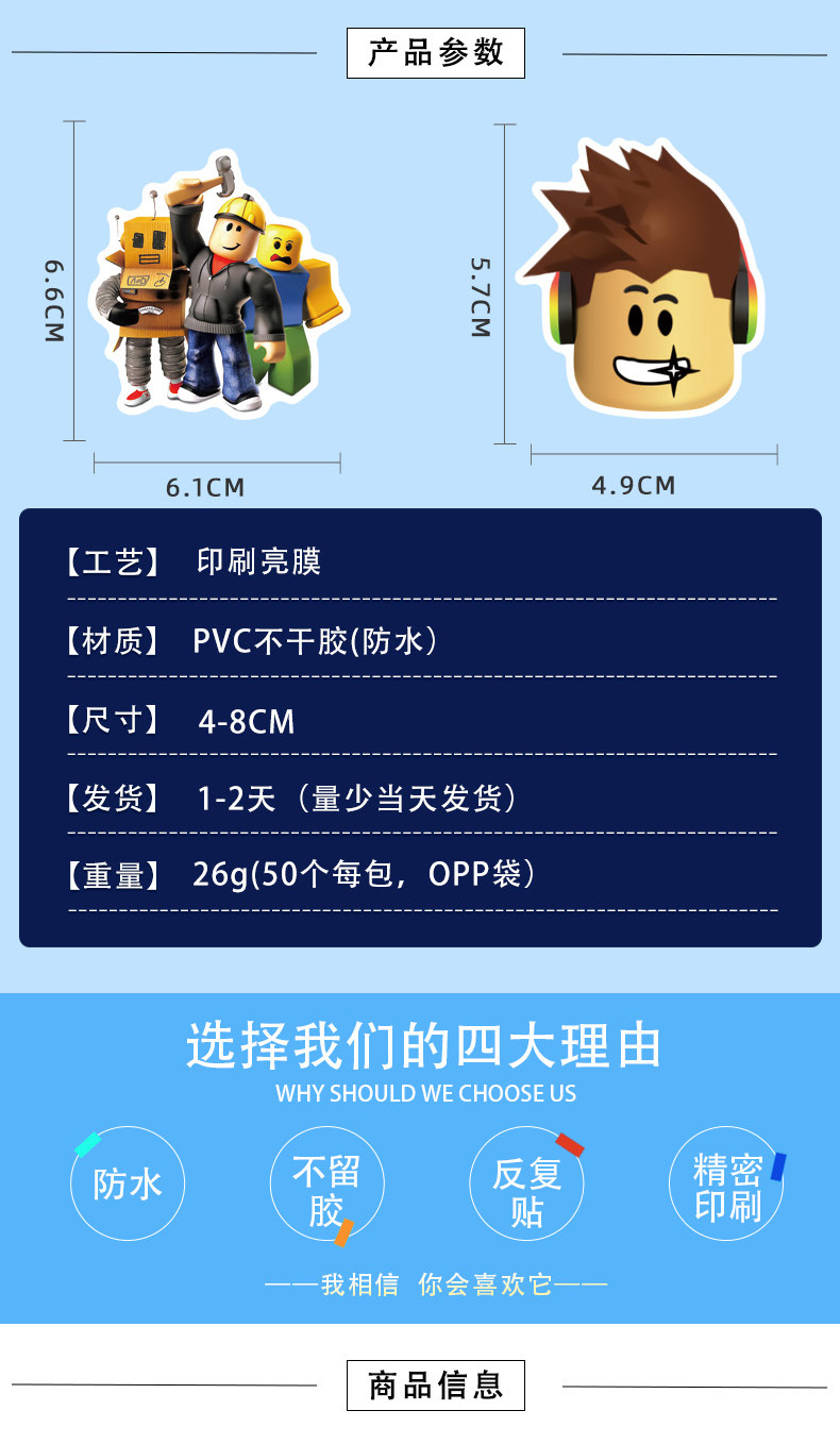 50 ROBLOX ROBLOX 게임 낙서 스티커 스케이트 보드 헬멧 절연 컵 방수 비 반복 스티커