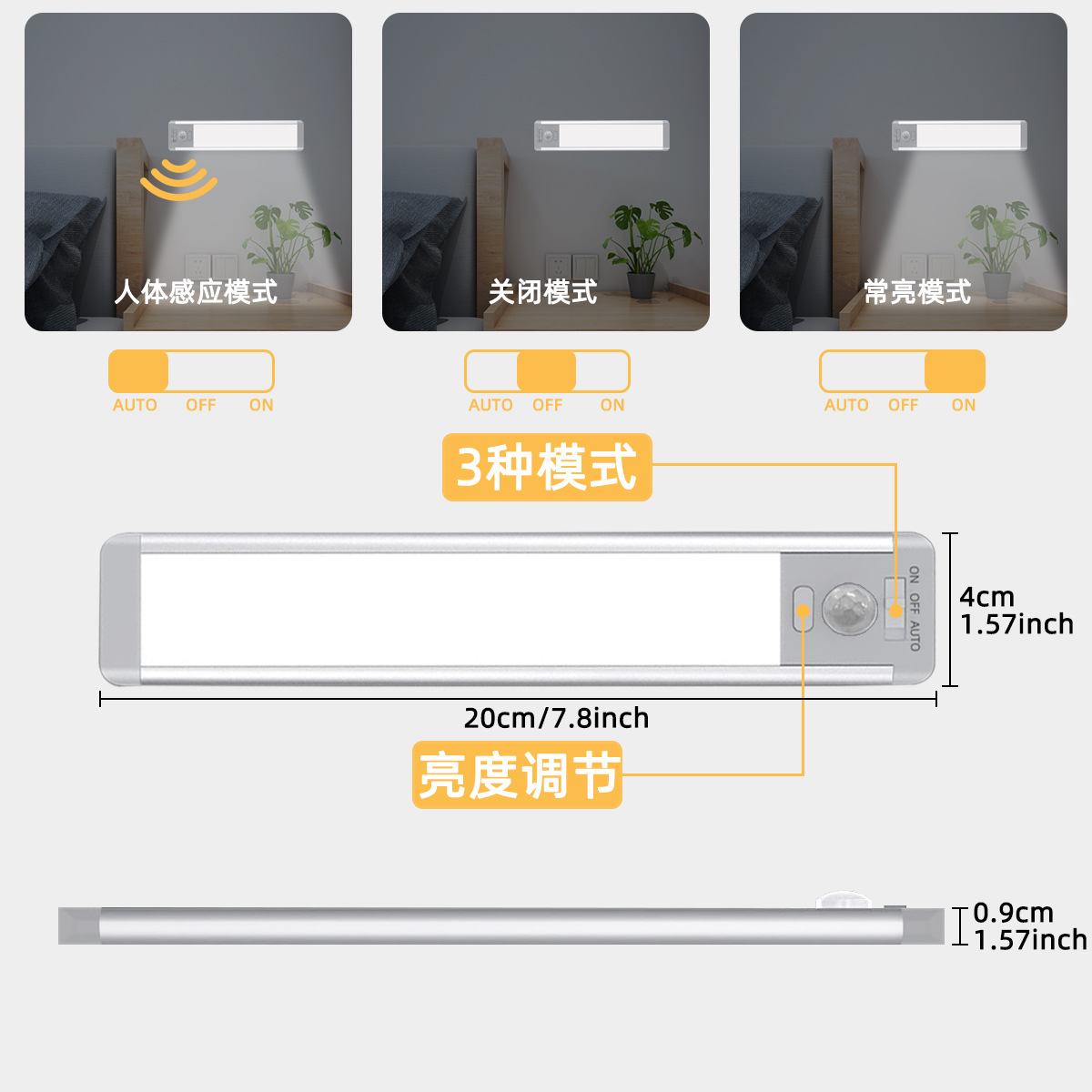 아마존 초박형 스마트 인체 감지등 야간등 자석식 무단계 조광 LED 캐비닛 옷장 와인 캐비닛 조명