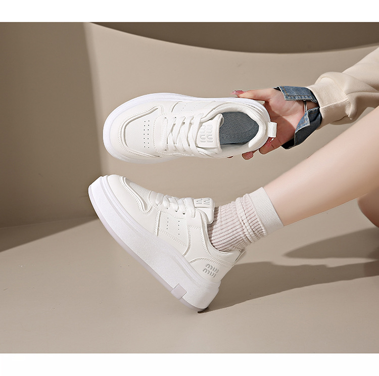 2024 가을/겨울 기모 따뜻한 흰색 신발 여성 두꺼운 바닥 다리 긴 여성 싱글 레이어 신발 올매치 캐주얼 보드 신발스토어 가기
