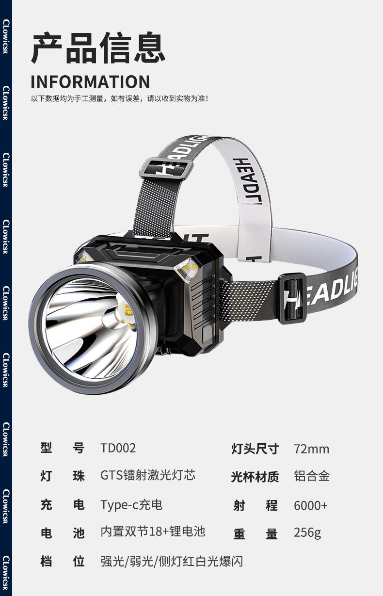 헤드램프 브라이트 충전 슈퍼 브라이트 화이트 레이저 헤드 마운트 실외 조명 램프 긴 내구성 고출력 광부 램프