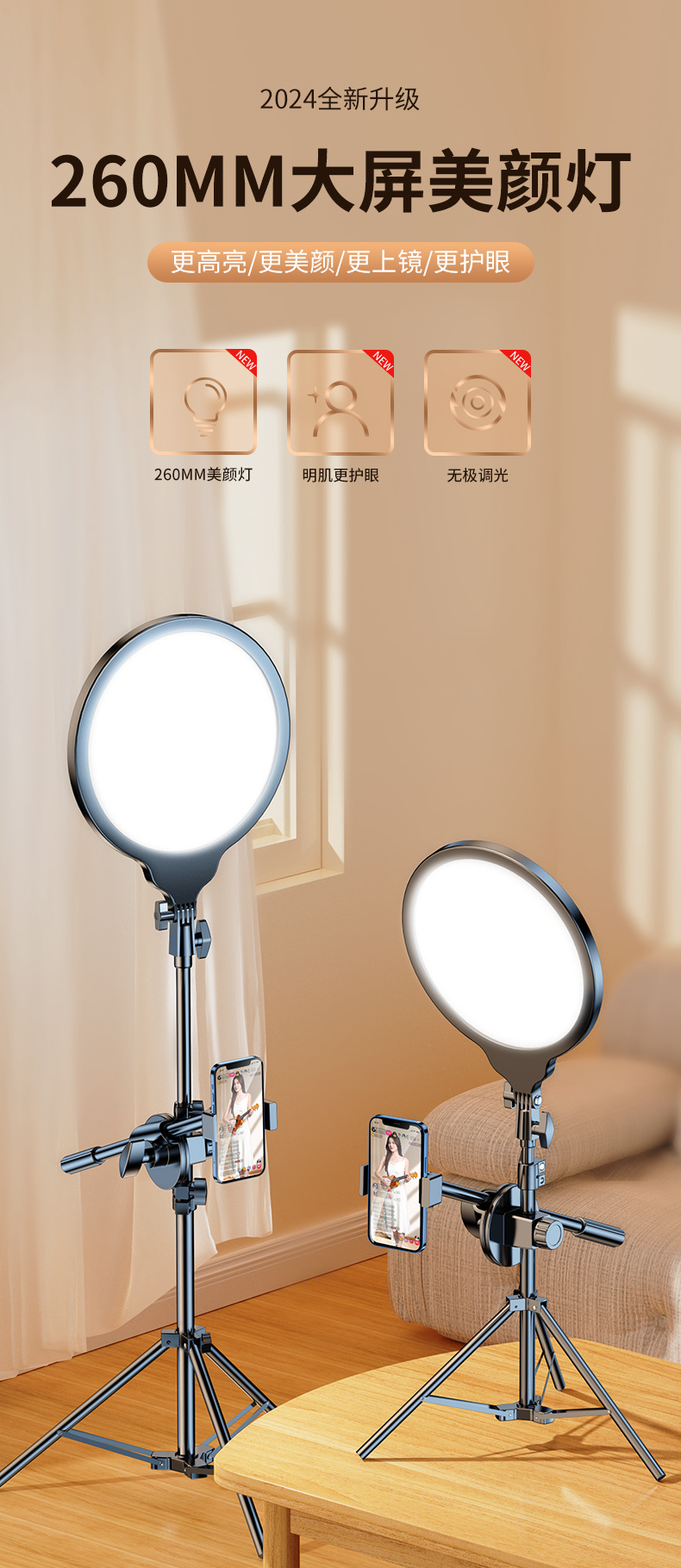 전체 화면 그림자없는 라이브 라이트 휴대 전화 브래킷 사진 스튜디오 소프트 라이트 뷰티 플랫 라이트 슈팅 삼각대