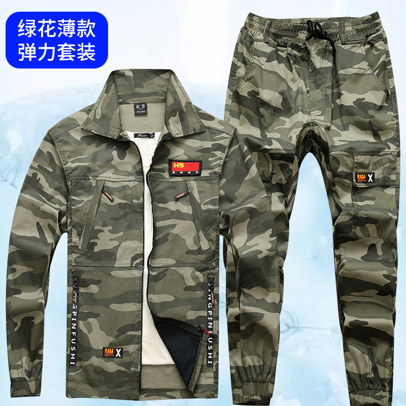 여름 탄성 통기성 세트 면 땀 흡수 작업복 용접기 의류 느슨한 여가 노동 보호 세트 작업 공장