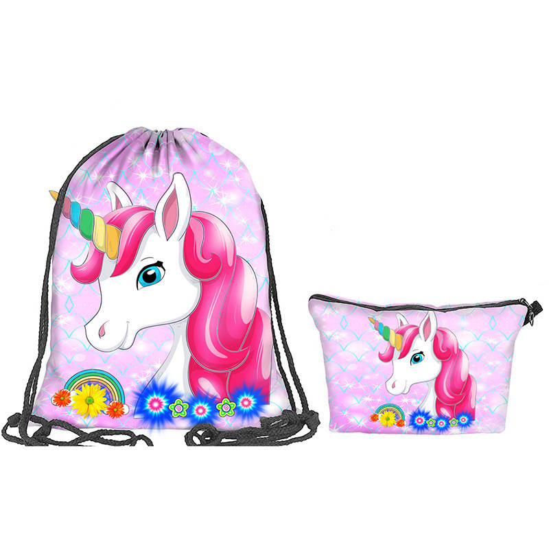공장 직접 폴리 에스테르 배낭 가방 유니콘 대용량 휴대용 가방 드로우 스트링 드로우 스트링 포켓 로고