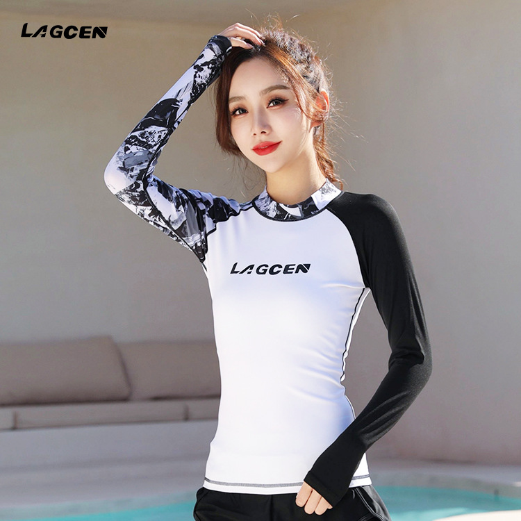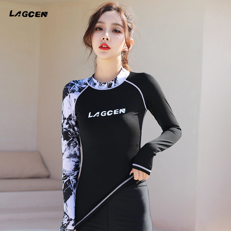 LAGCEN 뉴 스타일 여성용 전문 자외선 차단제 슬림핏 블라스트 슬림핏 해변 속건 수영복 보수적 긴 소매스토어 가기