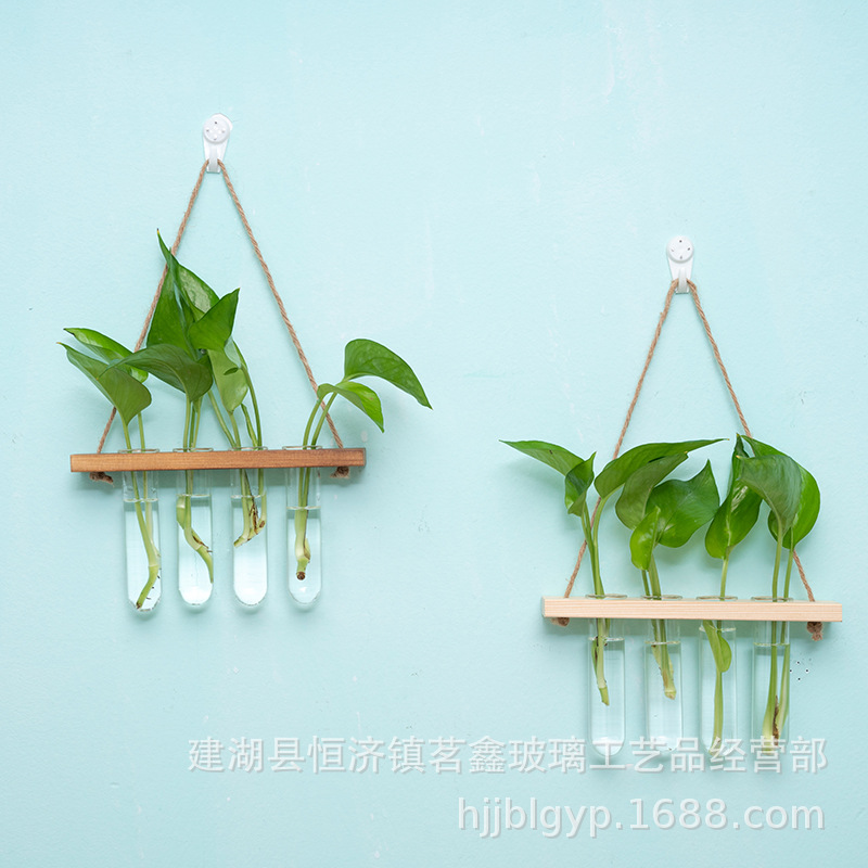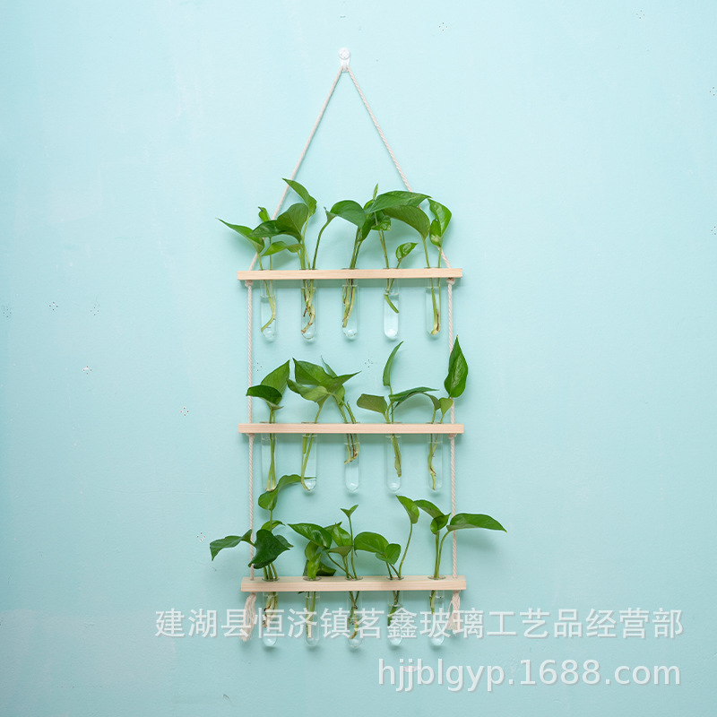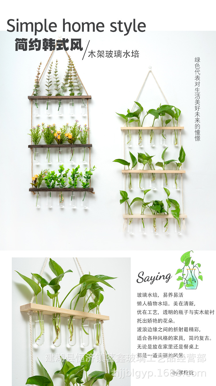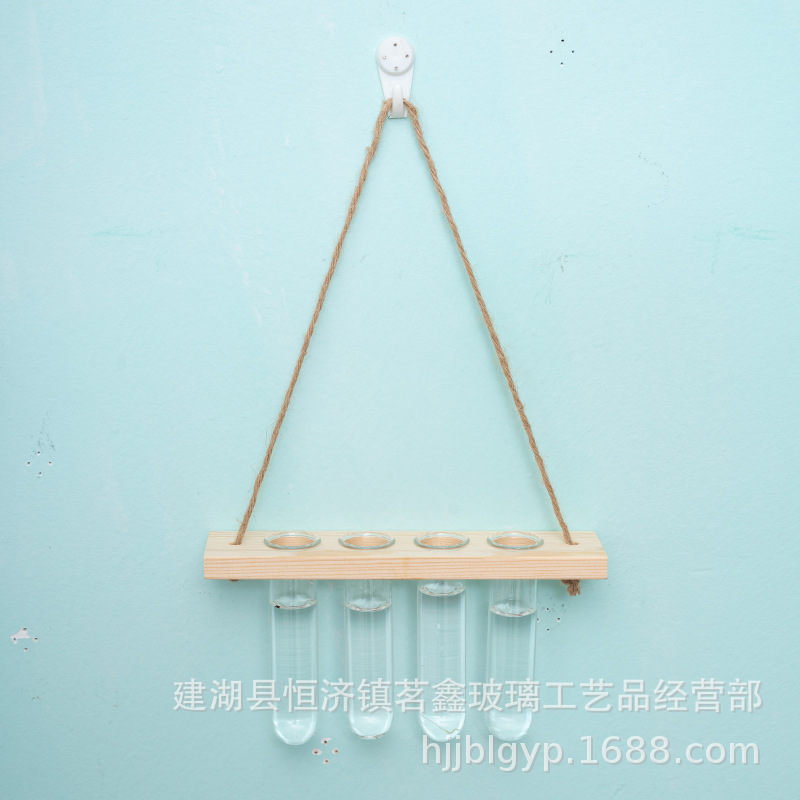 벽걸이 수경 식물 테스트 튜브 교수형 벽 꽃병 나무 교수형 마 로프 꽃 스탠드 벽 혁신적인 장식 유리 용기스토어 가기