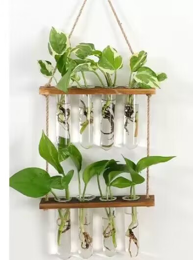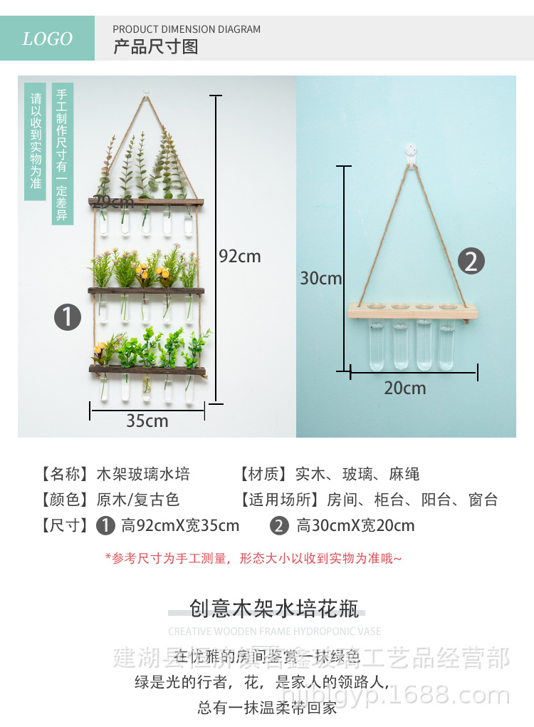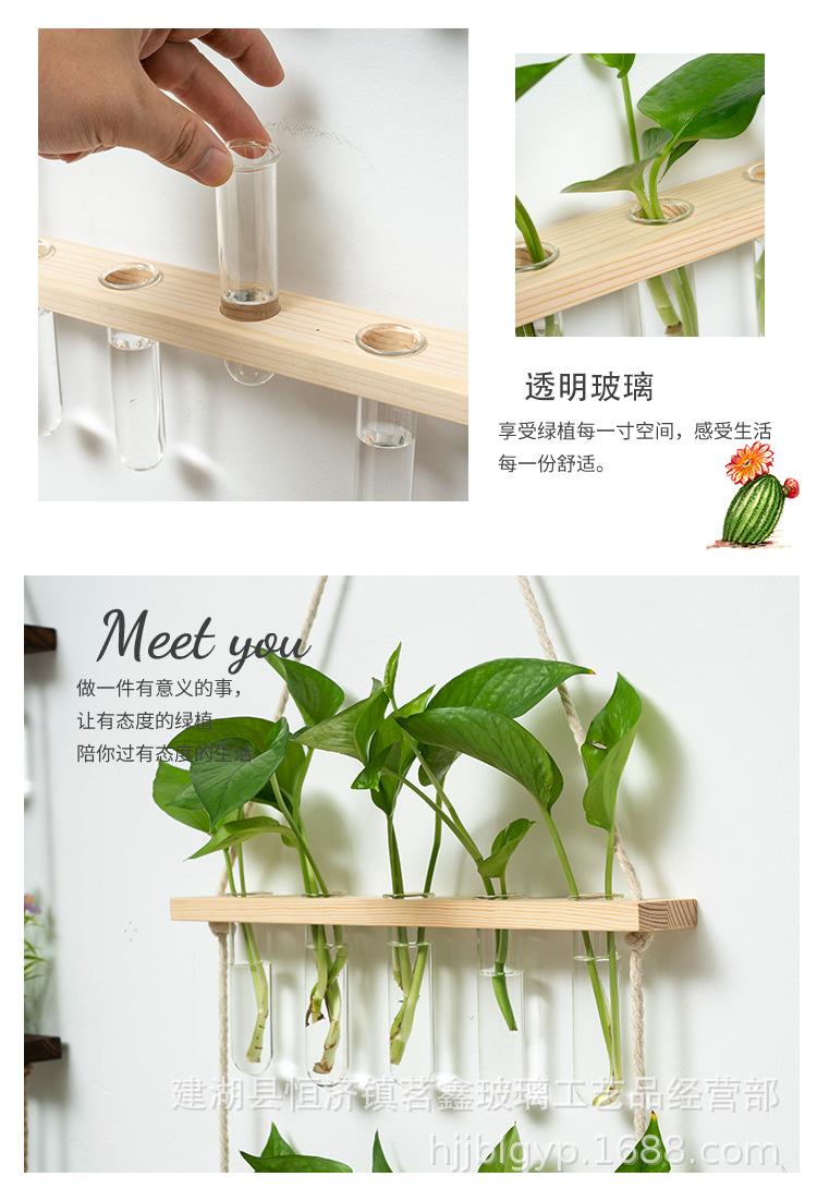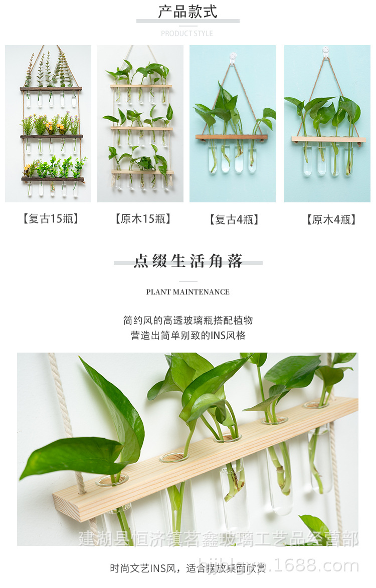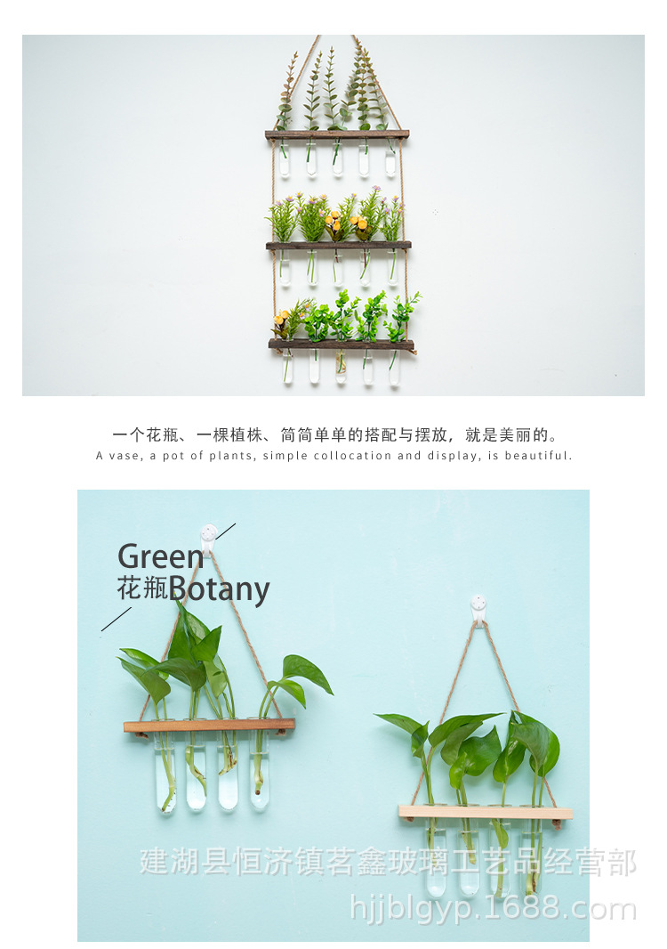 벽걸이 수경 식물 테스트 튜브 교수형 벽 꽃병 나무 교수형 마 로프 꽃 스탠드 벽 혁신적인 장식 유리 용기스토어 가기