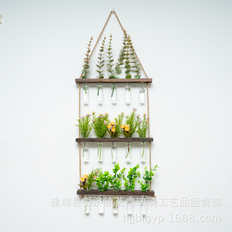 벽걸이 수경 식물 테스트 튜브 교수형 벽 꽃병 나무 교수형 마 로프 꽃 스탠드 벽 혁신적인 장식 유리 용기