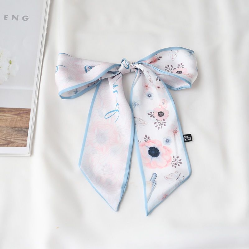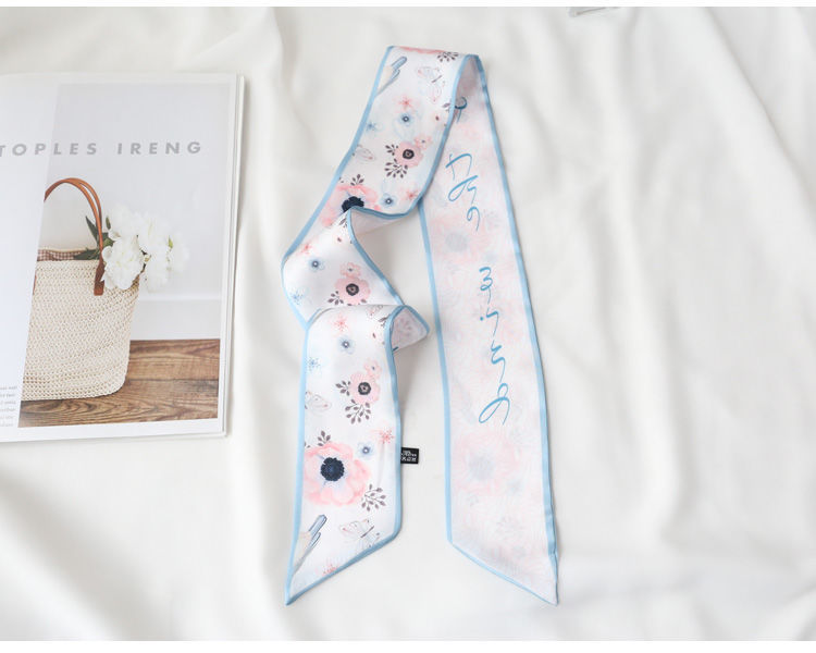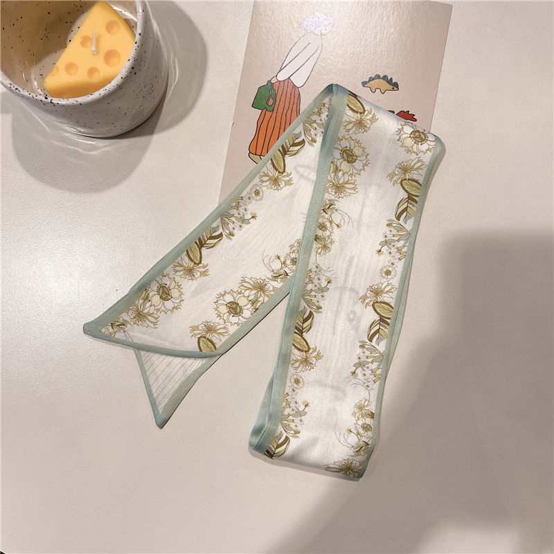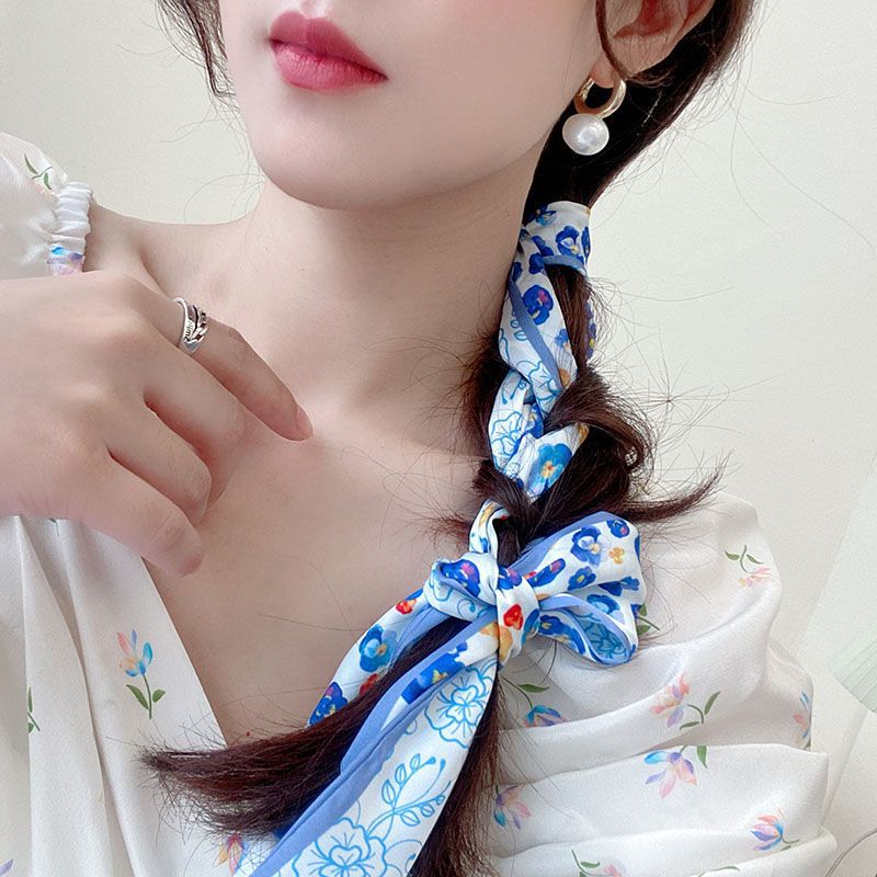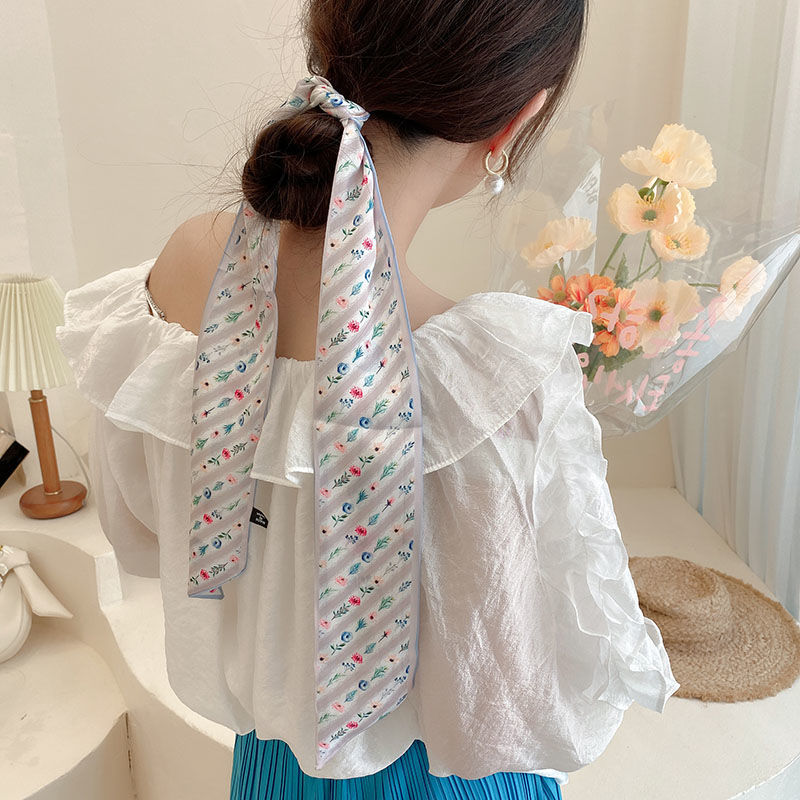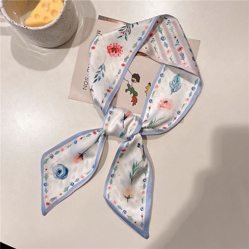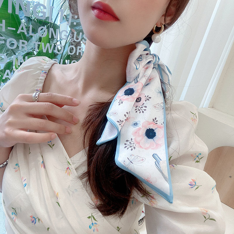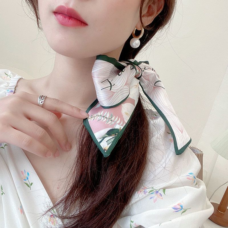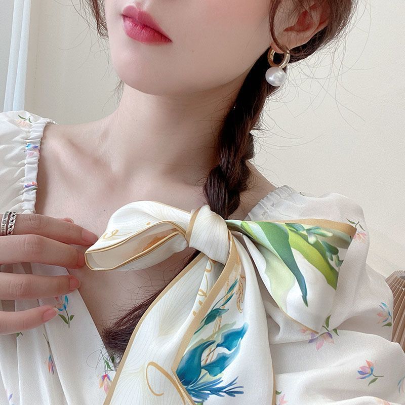 여름 꽃 신선한 실크 스카프 고급 양면 한국 스타일 리본 스카프 여성의 동반 행사