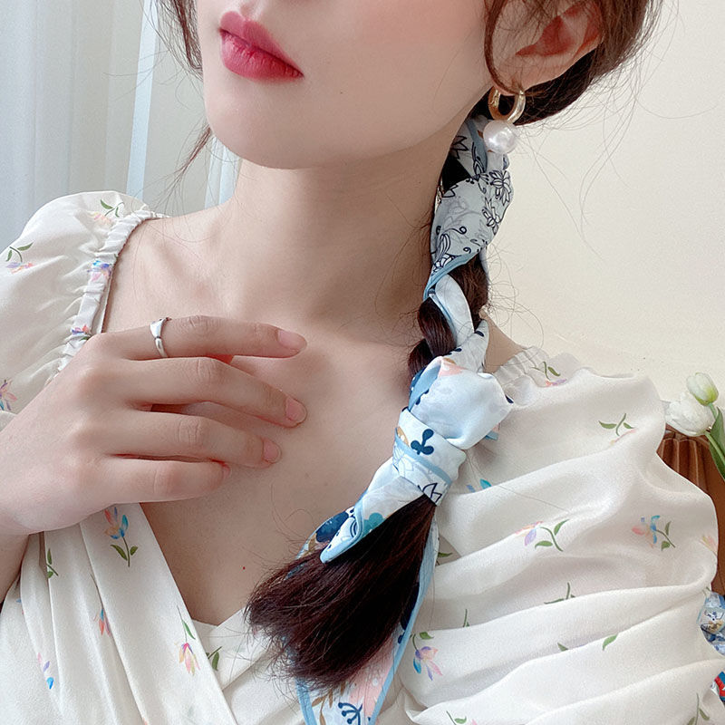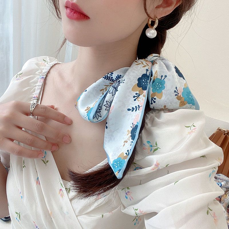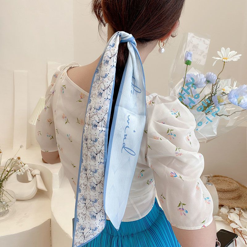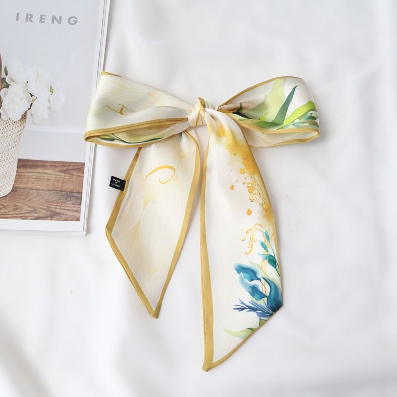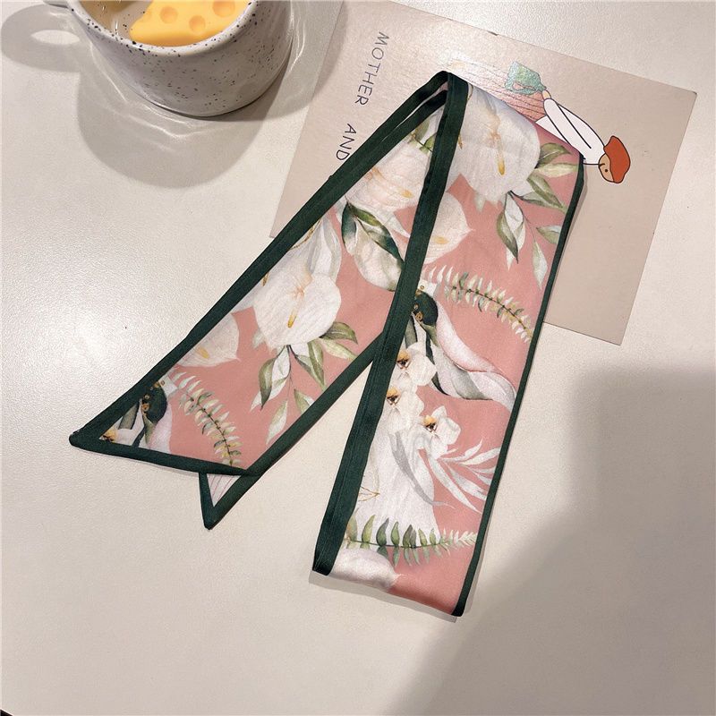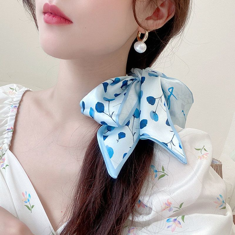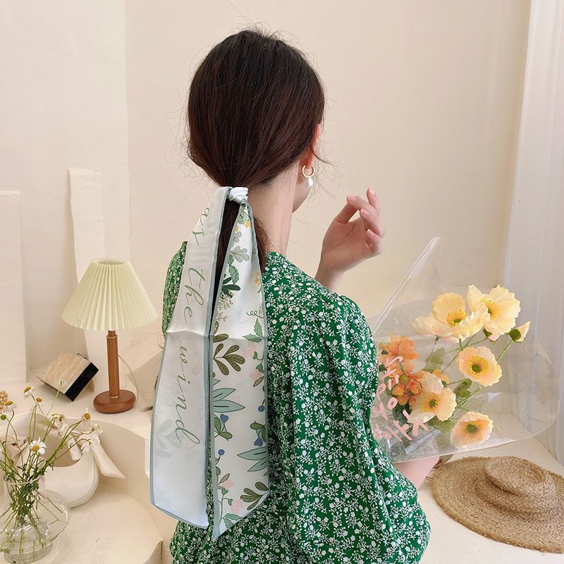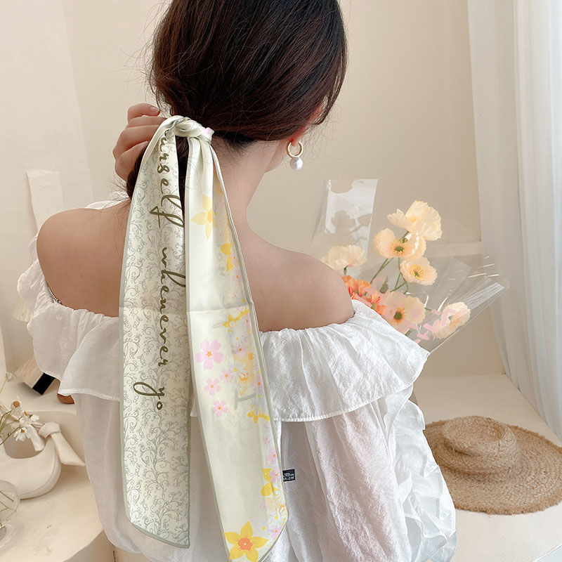 여름 꽃 신선한 실크 스카프 고급 양면 한국 스타일 리본 스카프 여성의 동반 행사