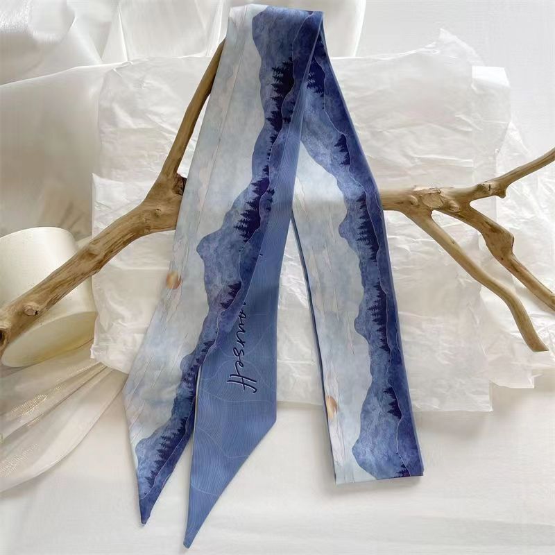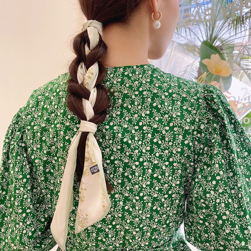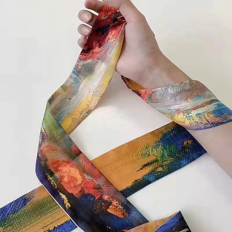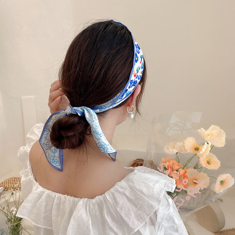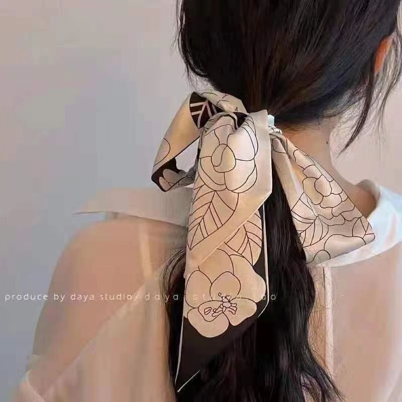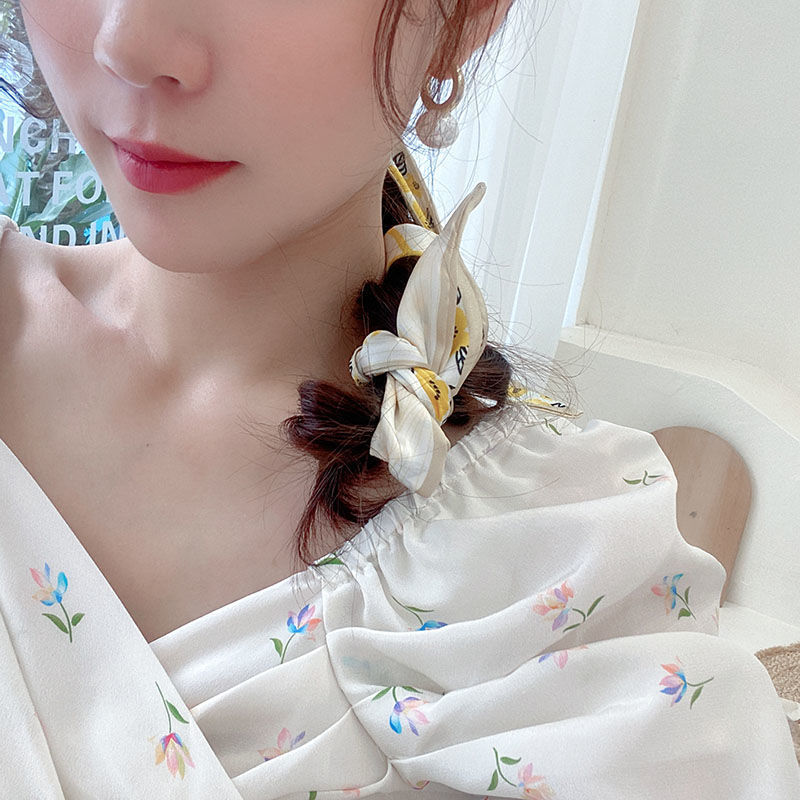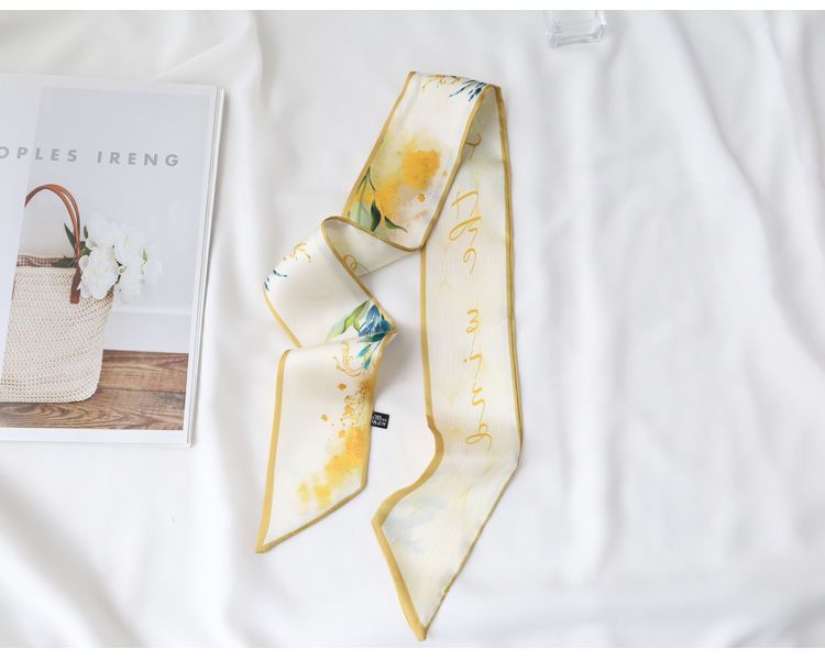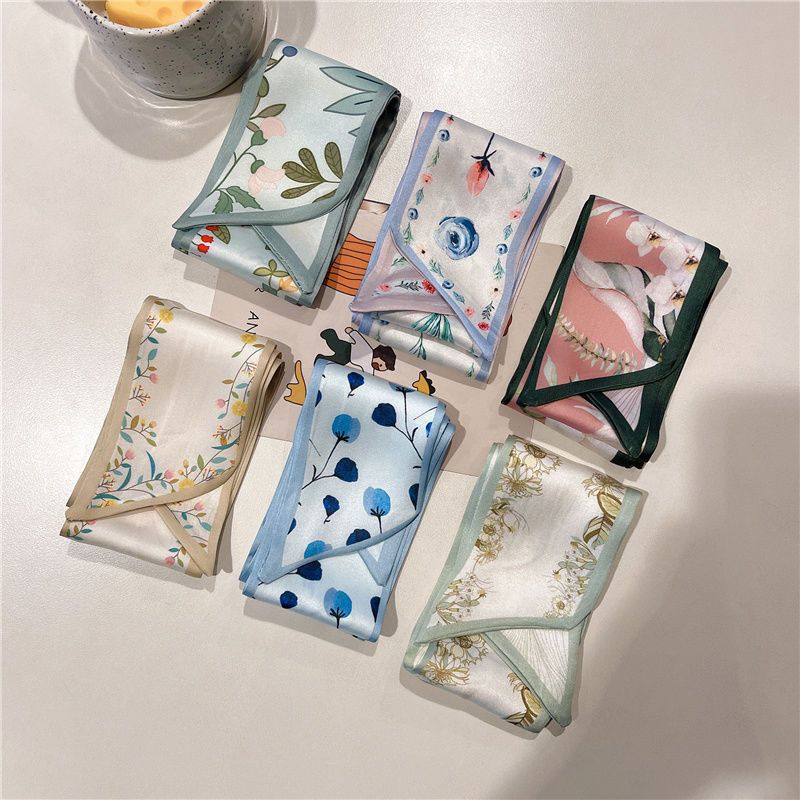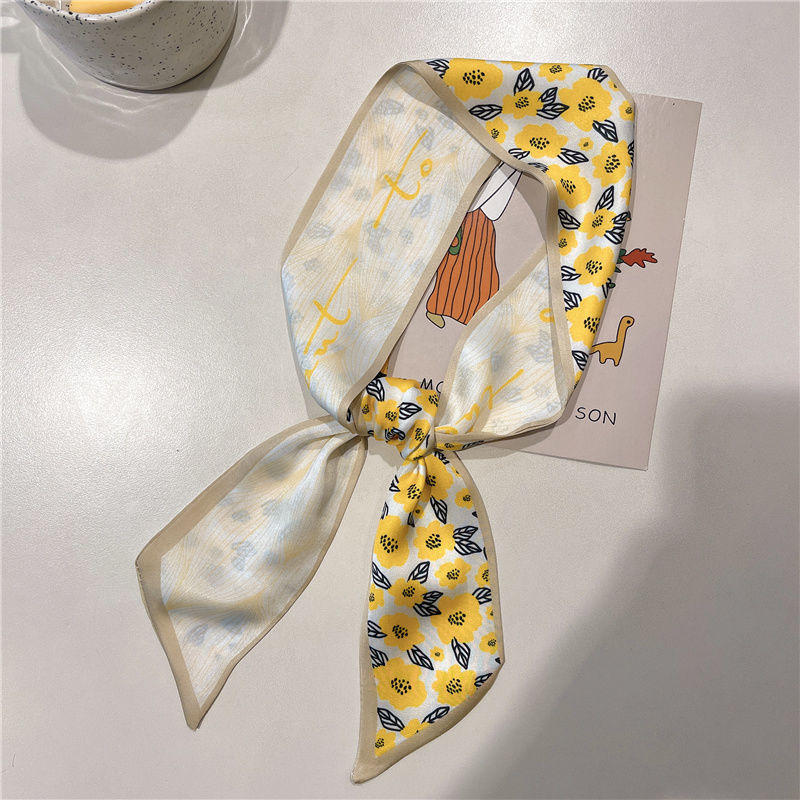 여름 꽃 신선한 실크 스카프 고급 양면 한국 스타일 리본 스카프 여성의 동반 행사