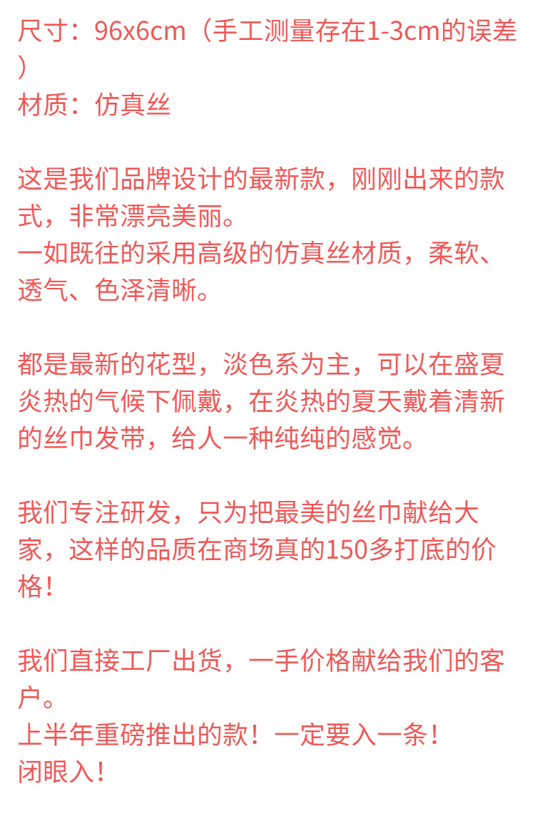 여름 꽃 신선한 실크 스카프 고급 양면 한국 스타일 리본 스카프 여성의 동반 행사스토어 가기
