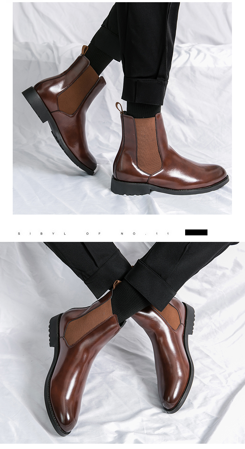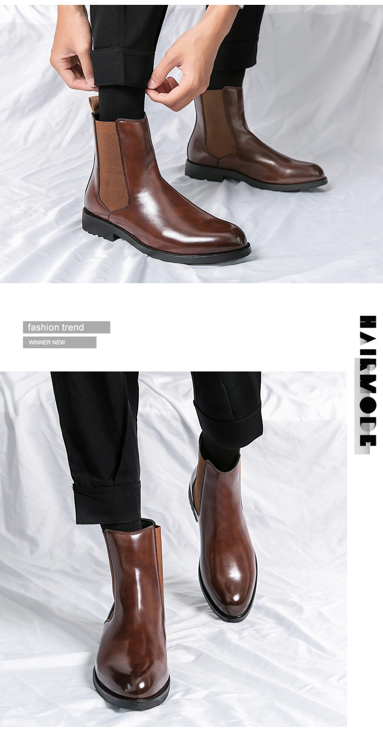 첼시 남성 부츠 겨울 기모 하이탑 캐주얼 가죽 신발 영국 유행 모든 경기 남성 유행 뾰족한 마틴 부츠
