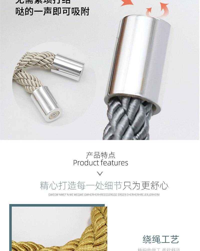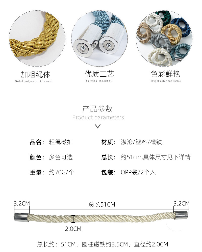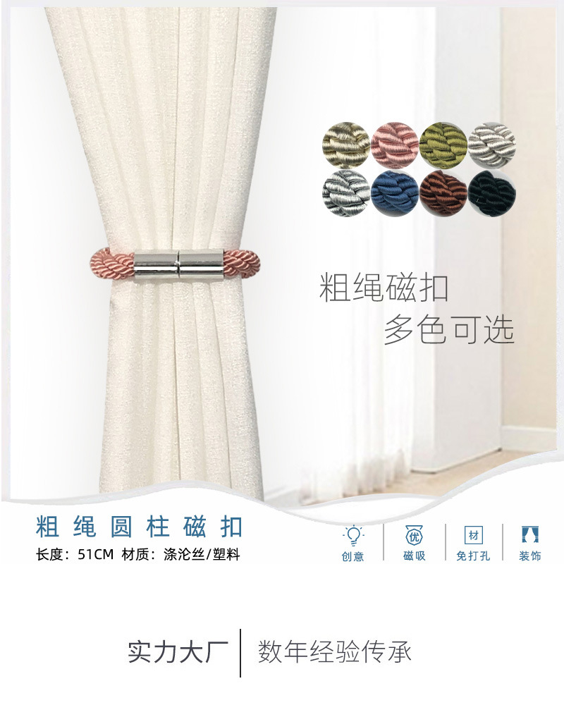 현대 간단한 가벼운 럭셔리 대마 로프 커튼 마그네틱 버클 크리에이티브 타이 벨트 타이 커튼이있는 두꺼운 타이 로프 붕괴 액세서리스토어 가기