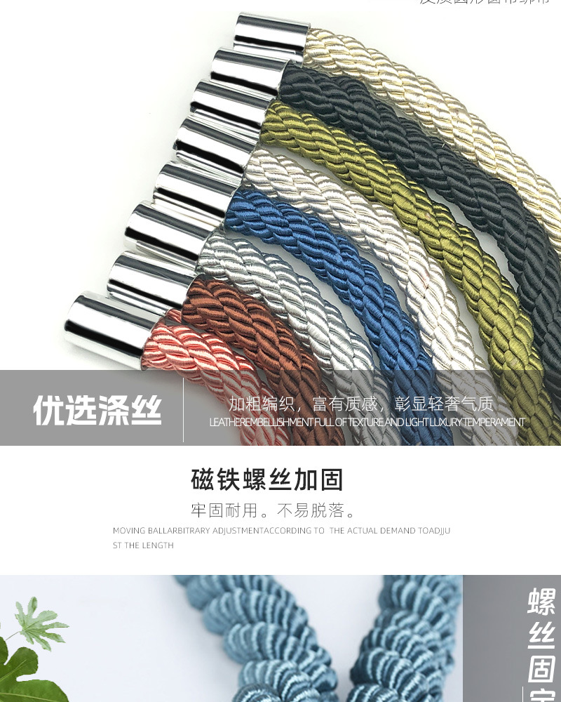 현대 간단한 가벼운 럭셔리 대마 로프 커튼 마그네틱 버클 크리에이티브 타이 벨트 타이 커튼이있는 두꺼운 타이 로프 붕괴 액세서리