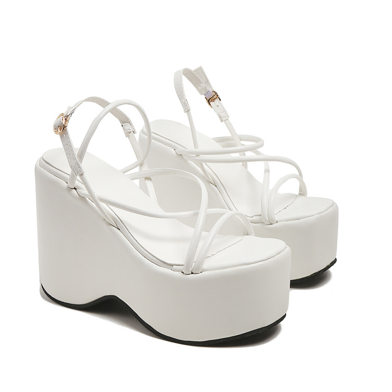 대외 무역 여성 신발 샌들 2023 새로운 유럽 및 미국 플러스 사이즈 방수 플랫폼 두꺼운 밑창 웨지 섹시한 한 단어 버클 샌들