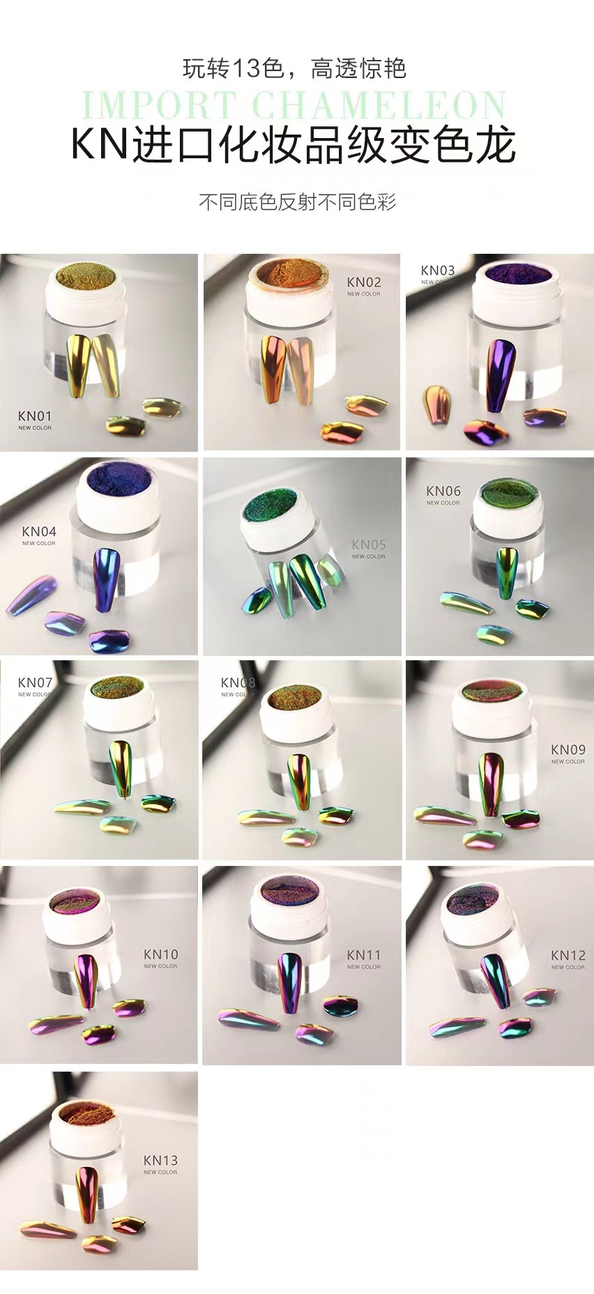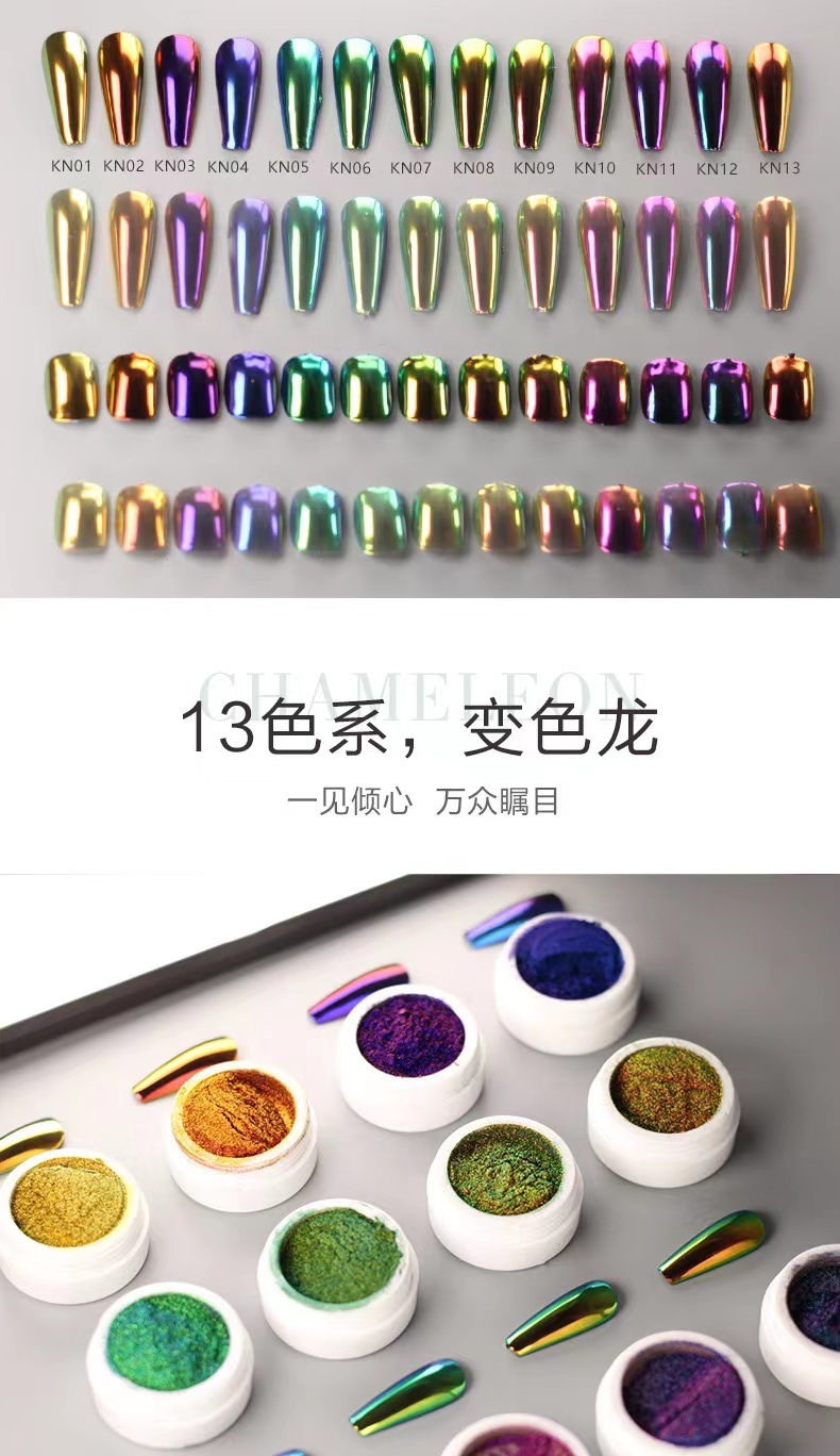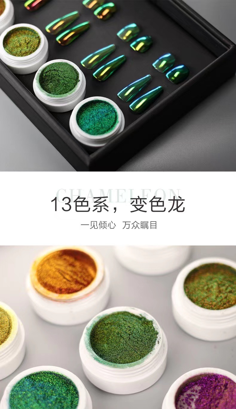 새로운 매니큐어 13 색 높은 투명 놀라운 카멜레온 매직 미러 밀가루 다른 배경 색상 다른 효과 독립적 포장스토어 가기