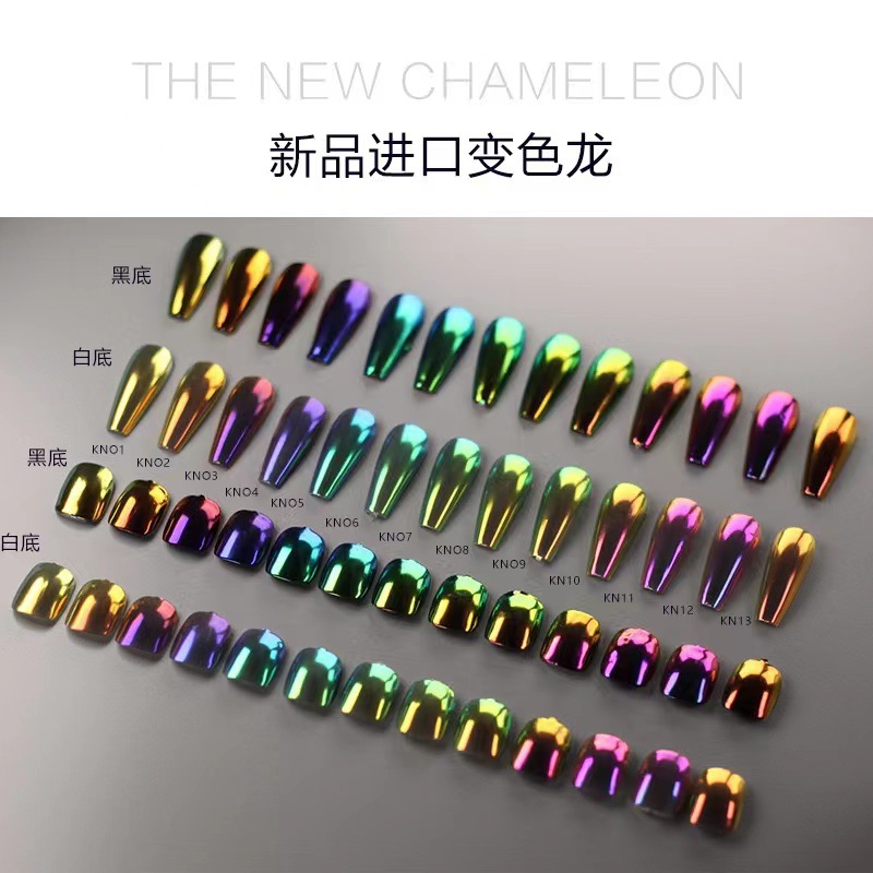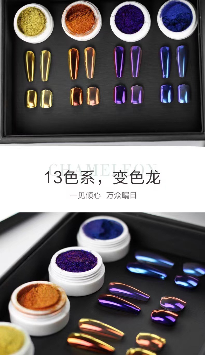 새로운 매니큐어 13 색 높은 투명 놀라운 카멜레온 매직 미러 밀가루 다른 배경 색상 다른 효과 독립적 포장